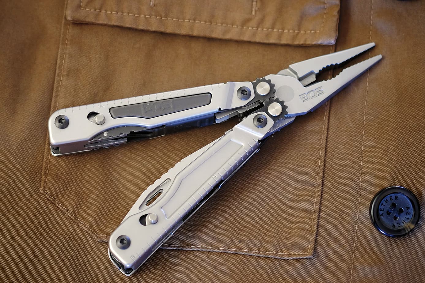 A standout element to most SOG multi-tools is the innovative main pivot mechanism on the pliers. Their proprietary Compound Leverage technology utilizes multiple gear-stabilized pivot points to double compression power, resulting in sharper wire cuts and less hand fatigue during heavy use. The cutters can apply enough force to cut through a coin, and the narrow point of the jaws fit within tight confines for tasks that demand a high level of dexterity.