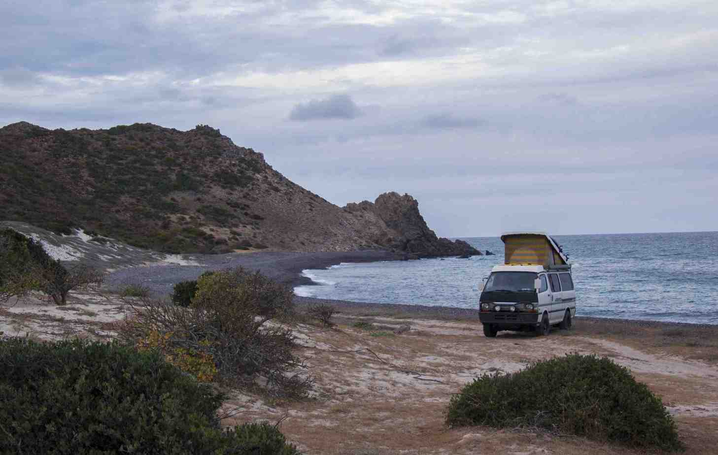 Cabo Pulmo National Park is located about 30 kms south of La Ribera – 20 kms of which is unpaved and straight washboard. This boondock area sat at the bottom of the hill as you enter into the village. There were a couple other groups parked closer to the entrance but we found a secluded cove towards the southern end of the beach. There are no amenities.