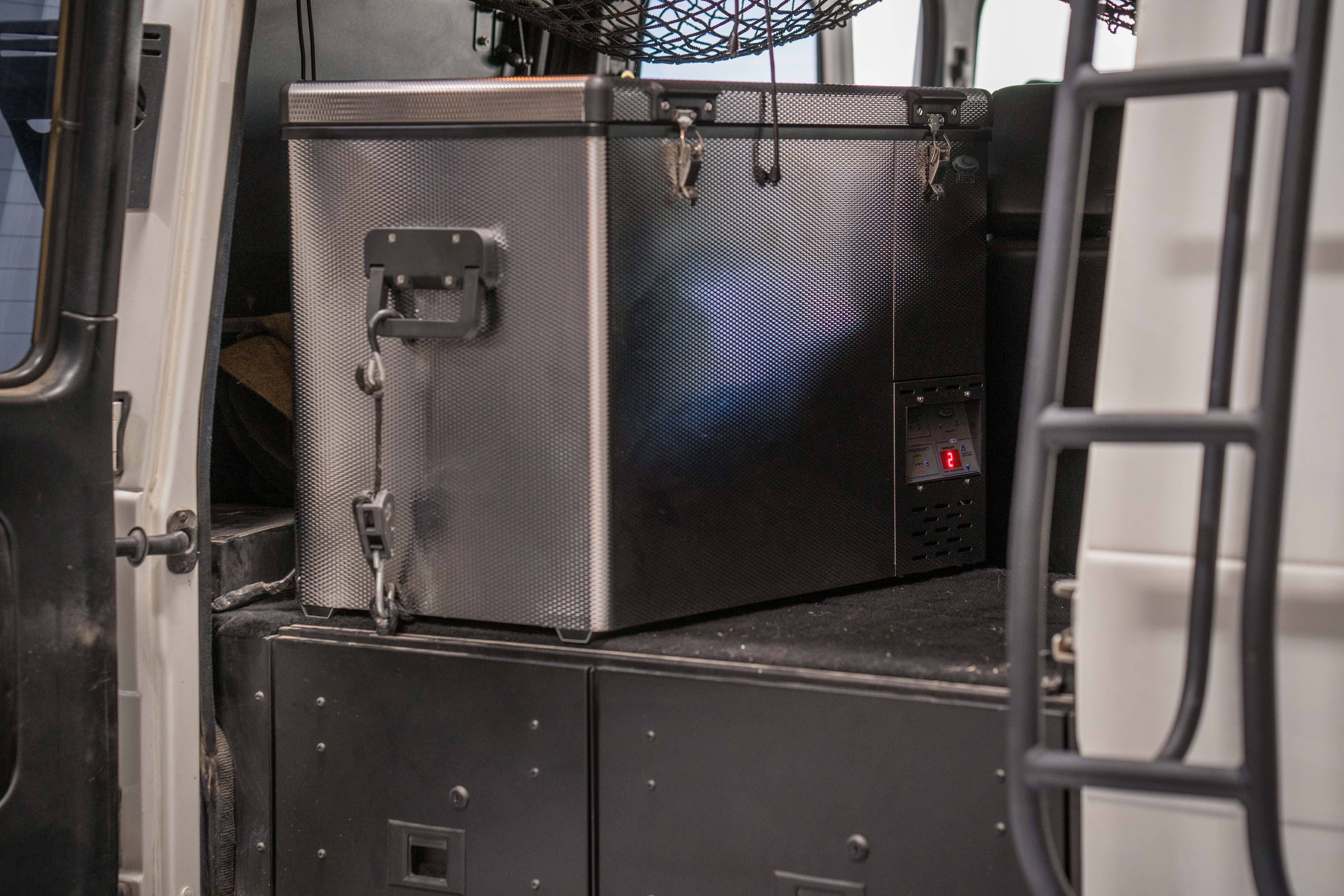 We received an early test unit, and installed it in out project G-Wagen. The robust handles allow for easy lashing of the fridge to our drawer system, and it plugged right in to our Hella outlet in the back of the Mercedes. It is important to ensure that your outlet wiring is suitable to fridge amp startup and run draws.