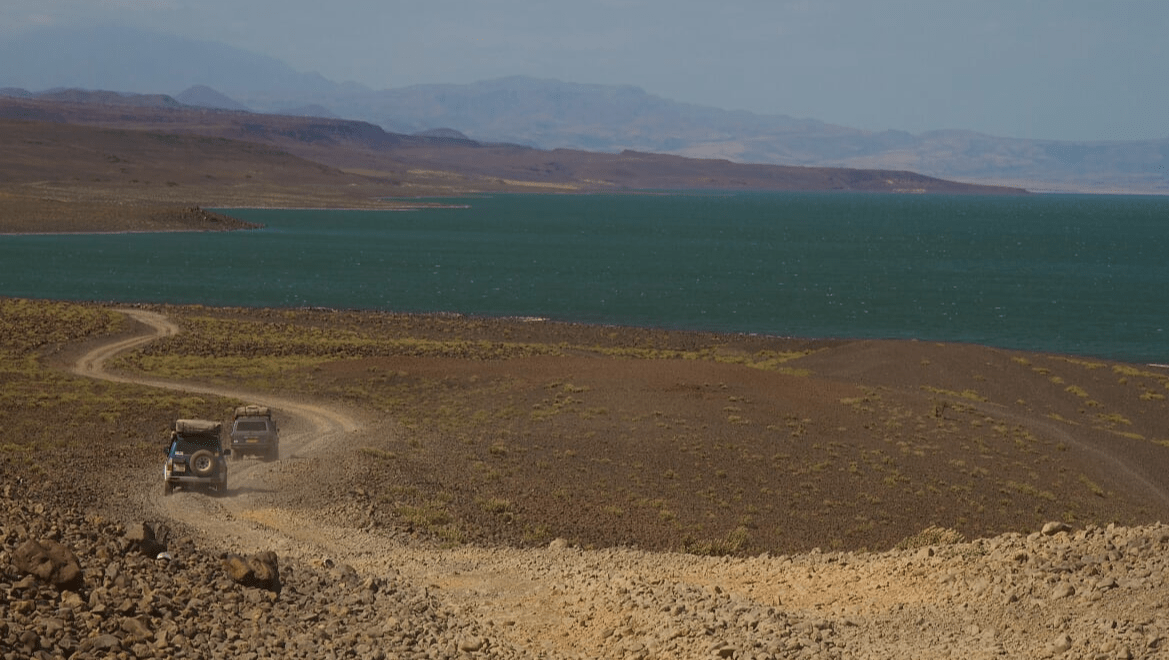 We gathered together with 2 other cars to start the Lake-Turkana-Adventure. No road, volcanic rocks, sand and a lot of dust. We prepared ourselves for a hot 8 day journey without any diesel, water or shade on the route, the only way to survive is to keep on driving to get some “cool dusty air” (as the air-conditioning from our car is broken). Unfortunately one side of our axle in the rear broke down somewhere in Ethiopia, we got it welded 4 times, as the welding service in Ethiopia is not so good, so we have to make it to Nairobi to get it fixed properly. We hope our axle will hold it through Lake Turkana. We started our journey with a very anxious heart. Our trip along Lake Turkana was a big adventure! Driving here takes skills and nerves of steels.