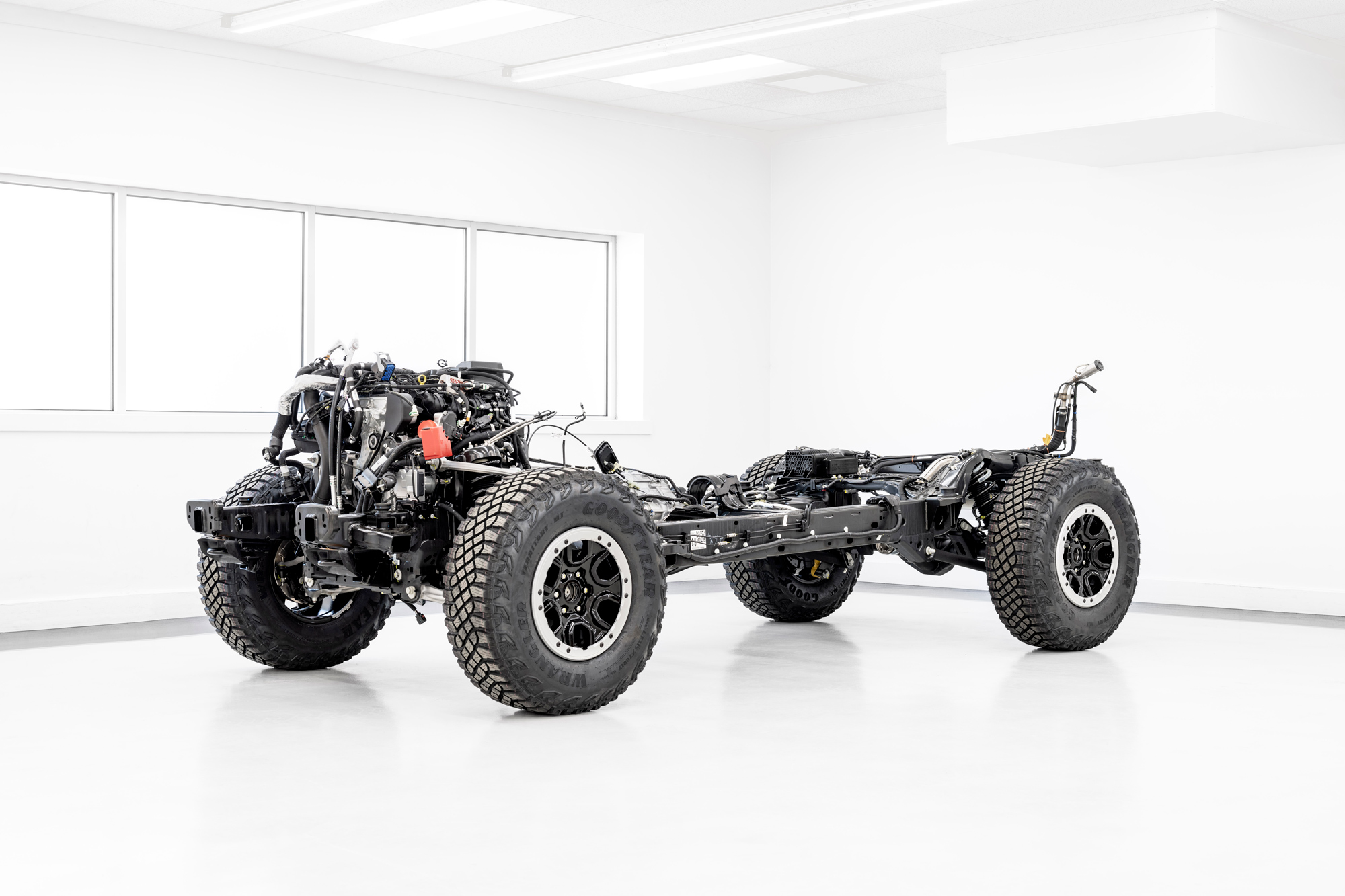 Bronco is powered by a Race-bred EcoBoost engine, with either a 7-speed manual or 10-speed automatic transmission. With the manual transmission and advanced 4×4 mode, Bronco can achieve a 94.75:1 rock crawling gear ratio (the automatic version can achieve 67.8:1). The 2.7-liter EcoBoost V6 engine is projected to produce 310 horsepower and 400 pound-feet of torque, while the 2.3-liter 4-cylinder EcoBoost is targeted to produce 310 pound-feet of torque with an expected 270 horsepower.