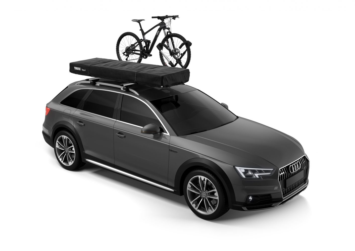 Thule says that their new Foothill tent can easily be deployed by one person and that the setup is intuitive, utilizing telescopic internal frame poles. Highlights of this tent include an oversized entry, multiple skylight windows, a rear panoramic window, and a newly designed base that is simultaneously lightweight with increased stability and strength. The Foothill comes with pre-installed mounting rails that facilitate easy installation. The UV- and mold-resistant canopy is designed to hold up to year-round use, while the included rainfly keeps things dry when precipitation shows up. The new Foothill RTT weighs 110 pounds and has a 400-pound capacity.