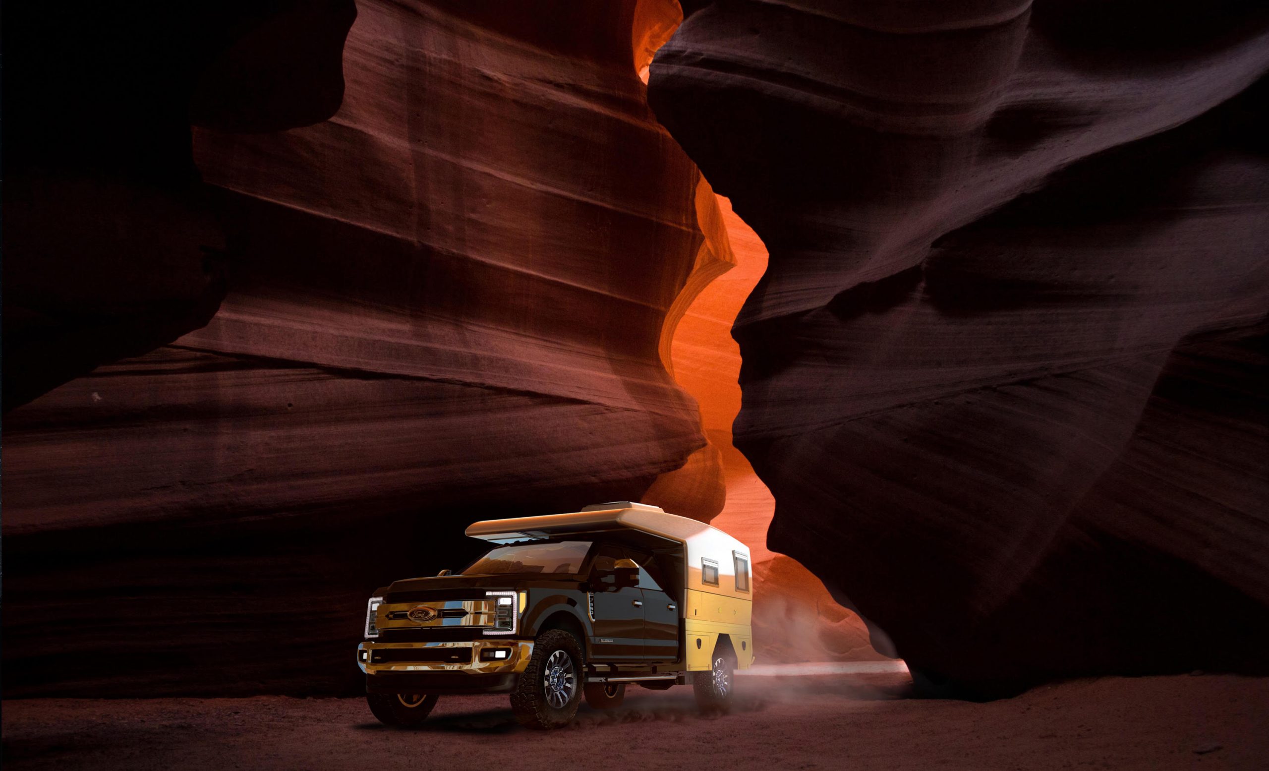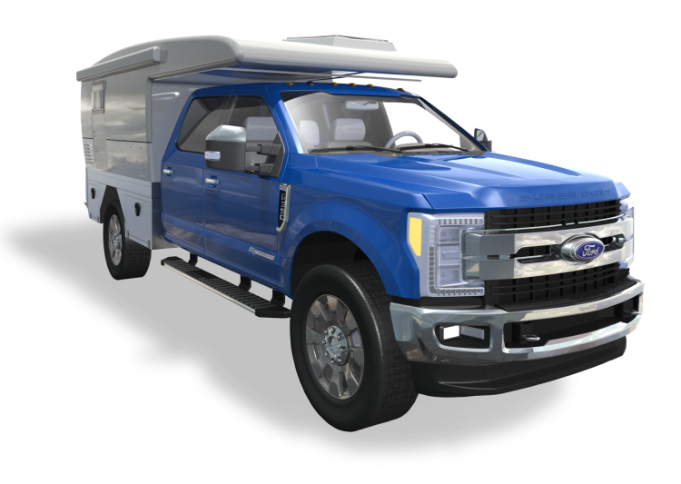 For over a year, this team has been working to refine the existing technologies and make a better camper, including the selection of the Ford chassis and a monocoque uni-body camper. The F350 is certainly a good fit, and available with a 7.3 liter V8 and 10-speed automatic transmission. The specification of a 1 ton provides some early insights into the lighter weight of the Evolution. This is certainly a positive, as many competitive expedition vehicles are so heavy that they begin pushing the 20,000-pound territory. The F350 has an available locking rear differential and multi-mode traction control, along with a 48-gallon fuel tank and an Icon suspension system with 35-inch-tall tires.