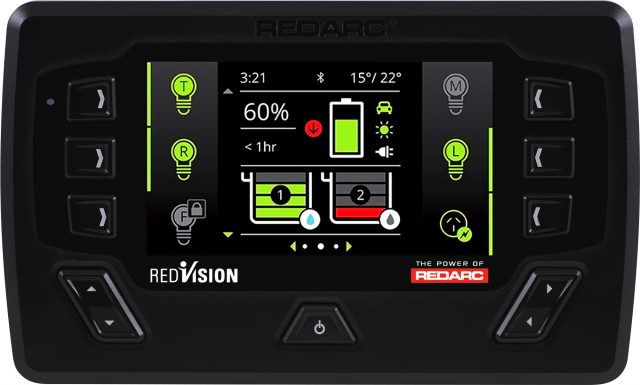 The RedVision combo also acts as a master switch. For example, lights and all other loads except the fridge can be turned off by just pressing one button or when the vehicle ignition is turned on—awesome.