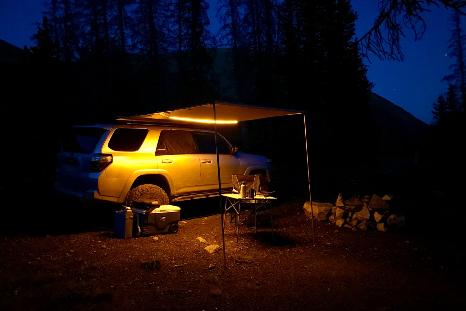 Steamboat was very high on my list. I drove from Breckenridge, and as I approached Sand Mountain, a wide smile found its way onto my face. From my estimation, this was just under 13 miles. I found the Mill Creek Trailhead and aired down. The trail began modestly and progressively got rockier and bumpier, but nothing was too intense—it was gorgeous. Sand Mountain is a loop with some medium level rocks, boulders, and ledges, with wildflowers blowing in the wind with views down on Steamboat Springs Lake. I started to put my attention on finding camp. I skipped the hike to the top of Sand Mountain and passed through an aspen forest, finding my camp spot for the night. Once the sunset had come and gone, I deployed the new Luci multicolor lights and was thrilled, realizing my camp setup was becoming more dialed in.