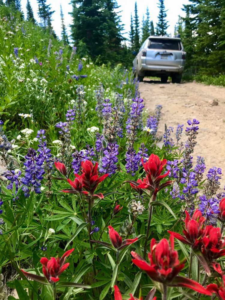 Buffalo Pass originally served as an important route connecting the towns of Walden and Steamboat Springs. Residing in the Routt National Forest, this gentle trail rolls through scenic land. Wildflowers were everywhere. The trail was on the easier side compared to the previous day’s adventure on the Ellis Jeep Trail, and waking up on the trail this morning, I knew I was in for an easygoing scenic trail ride. I found a spur trail that looked from my vantage point to follow along some power lines. I ventured up that way and was pleased to see the difficulty rockiness increase a bit. This was a slightly less-traveled portion of the track. I ascended until the trail ended near a rocky outcrop, hopping out to take in the great view of the Routt National Forest. I descended back to the spot where the spur trail reconnected with Buffalo Pass, and I continued on the trail. With the sun out and the wildflowers blowing in the breeze, this was an ideal way to enjoy the day and the Steamboat Springs backcountry. Along the pass, I came upon a number of good campgrounds with Dry Lake Campground, Summit Lake Campground, and Granite Campground, to name a few standouts. Summit Lake is right next to the Continental Divide and a wonderful spot. Granite Campground was off a spur trail off to my right that headed south, and it is another beautiful option for those wanting to see as much of this area as possible. This trail leads to the Fish Creek Reservoir. After reaching a closed gate, I turned back around to make my way back to Buffalo Pass. I continued on, finding one more spur trail that led to the south and the hidden lakes area. Once I had taken that spur trail as far as it would go, I headed back north, resumed Buffalo Pass, and completed the journey.