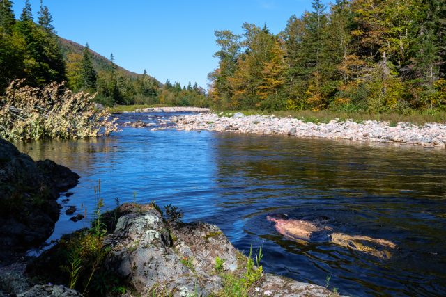 By the time you reach the bottom of the Margaree River Valley, you’ll be greeted by a wood and metal bridge spanning the wide yet shallow river. If you come prepared to fly-fish, you’ll find the water filled with trout and salmon in the right season. In the warm-weather months, escape the heat by heading south to stop by the swimming hole for a dip. When you’re done, the Big Intervale Fishing Lodge is just down the way, and a perfect stop for a hot coffee, cold beer, or a delicious meal. I went for the apple pie and coffee.