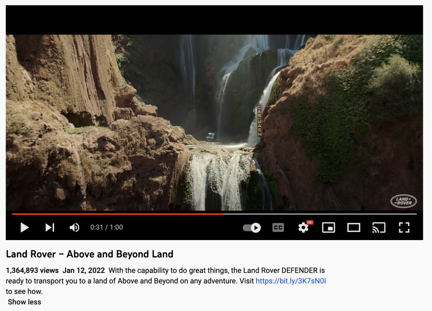 Out of 487 comments in response to this video, one mentioned the waterfall scene. “In our country, it’s forbidden to drive through [a] river [or] waterfall. We should focus more . . . on what is normally used off-road.” Land Rover responded that, rest assured, they had full permission to do so and cleaned the Defenders “to ensure there was no contamination.”