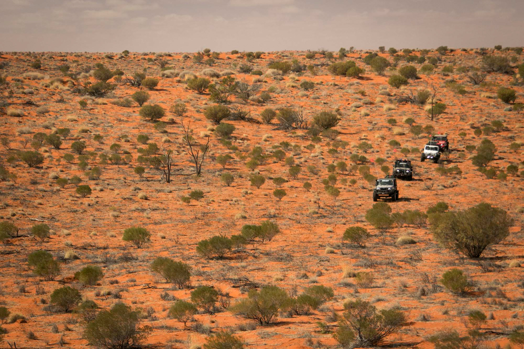 Sans services between the towns of Birdsville and Alice Springs, expedition leader Ian McDonald and his team needed to be fully self-reliant during the 900-kilometer crossing. Carrying all fuel, food, and water needed for the two-week passage, they succeeded in not only piloting their Jeeps through the sands of the Simpson but also completed a full crossing of the continent from the Pacific Ocean to the Indian Ocean.