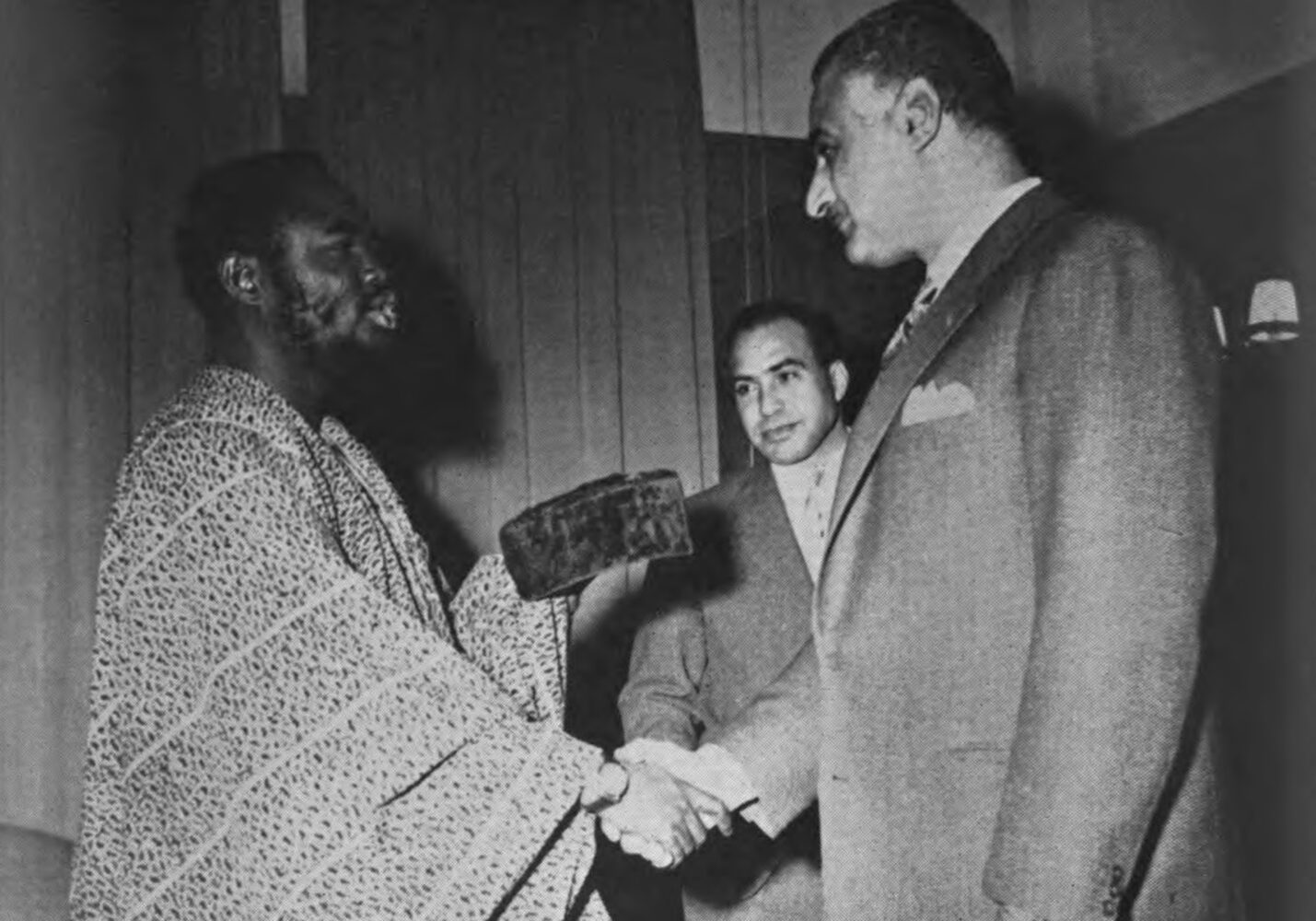 Ajala spent 13 months in the Middle East, including touring through Jordan, Iraq, Syria, Lebanon, Egypt, and Israel. While he gained exclusive interviews with the Premier of Jordan, Hazan Majali, President Nasser, and Prime Minister Abdul Karim Kassem of Iraq, Ajala was arrested, imprisoned, and deported on three different occasions. This did not seem to weaken his resolve, however. Every day for two weeks, Ajala waited in front of the presidential palace in Damascus for Egyptian President Gamal Abdel Nasser. On the thirteenth day, Nasser emerged from his residence. “I was in my flowing Nigerian agbada dress and made sure that I was conspicuous,” Ajala wrote. “Over the steel rails of the gate… I shouted as loudly as I could: ‘President Nasser, I am an African visitor here. I have a complaint against Cairo police. I seek your permission to talk to you.’” President Nasser agreed, asking Ajala to return the next day at three o’clock.