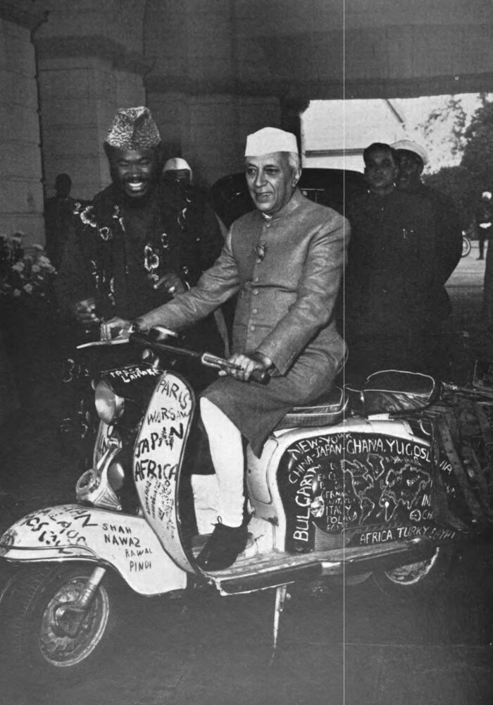 The first destination that Ajala discusses in An African Abroad is India. He found it refreshingly straightforward to request an interview with Pandit Jawaharlal Nehru, who was India’s prime minister at the time. After contacting the appointment secretary (who was also the chief of intelligence and security), a meeting was arranged within 24 hours. “Face to face with him, I felt that he was unselfconsciously shy, timid, and unusually moody. He has a cautious personality and impressed me as a man of honesty, a man very conscious of Man’s psychological dilemma,” Ajala wrote. At the end of their meeting, Nehru asked to have a seat on Ajala’s scooter. “I would very much like to sit on it myself, that is if it will not take off on its own, with me on it… I wish I were in a position to travel like you. There is so much to see and know about people in other parts of the world.”