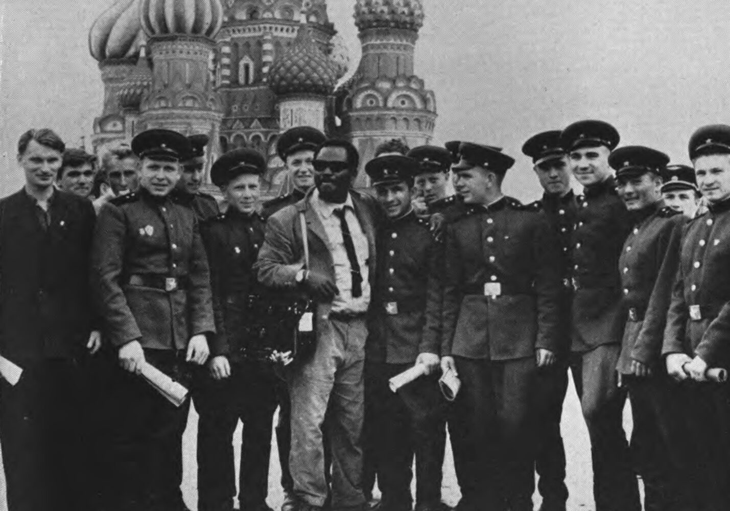 In East Berlin, Ajala broke through a throng of Russian M.K.V.D. Security Police, attempting to approach Premier Khrushchev for a visa to enter the Soviet Union. Ajala decided to personally hand a letter to the Soviet leader, scrambling through the cordon to face him. “I watched him duck and take protective cover behind his entourage,” Ajala wrote. “No doubt Khrushchev thought that I was a hired assassin who was out gunning for him.” The two smiled, shook hands, and two days later, Khrushchev granted Ajala a one-month visa. Later, at the German-Polish border, Ajala was apprehended and charged with espionage. He spent five days in a dark 8- by 3-foot cell. When Prime Minister Khrushchev heard of the detention, he gave orders for Ajala to be released immediately.