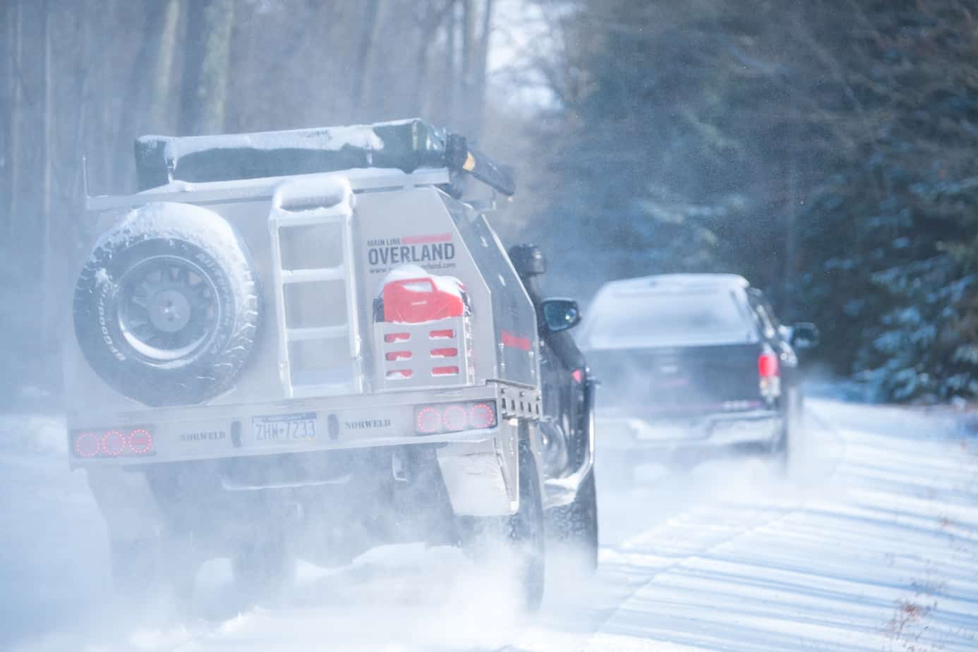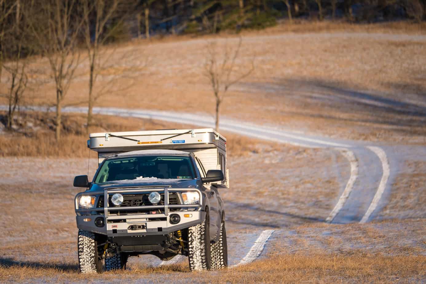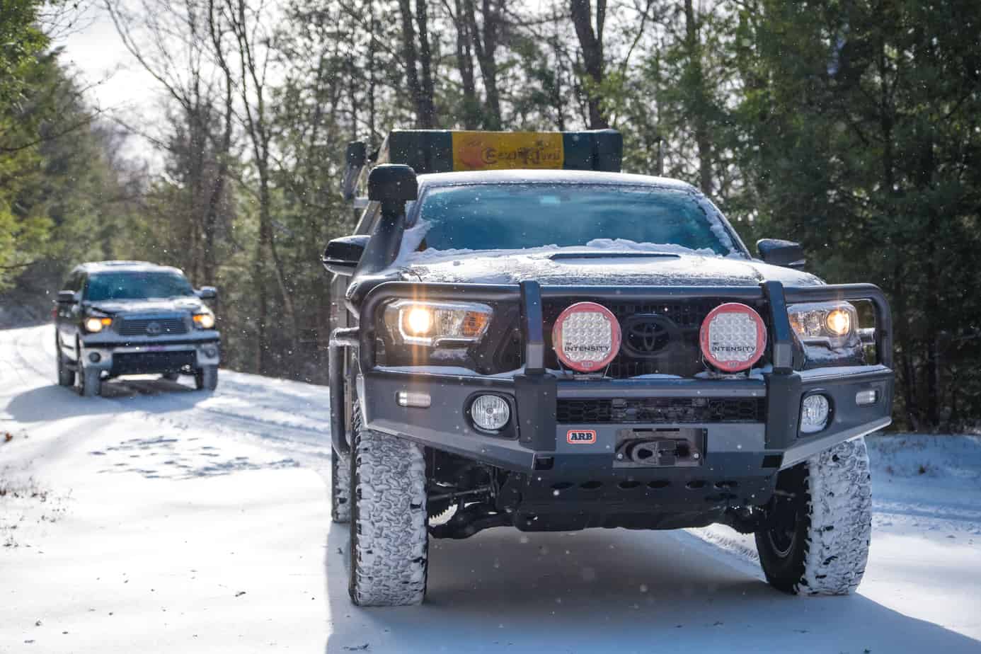 It was hard to believe that less than an hour ago we had been sipping coffee by the warmth of a fireplace and now we were deep in the woods of Pennsylvania taking photos of the Main Line Overland Tacoma. Our plan for the day was to meet up with Michael Hermann of Purple Lizard Maps and follow some of his favorite trails to see what adventures the east coast had to offer. Before long, Michael’s black Toyota Tundra rolled into view, and we set off into the snow, plowing fresh tracks as we went.