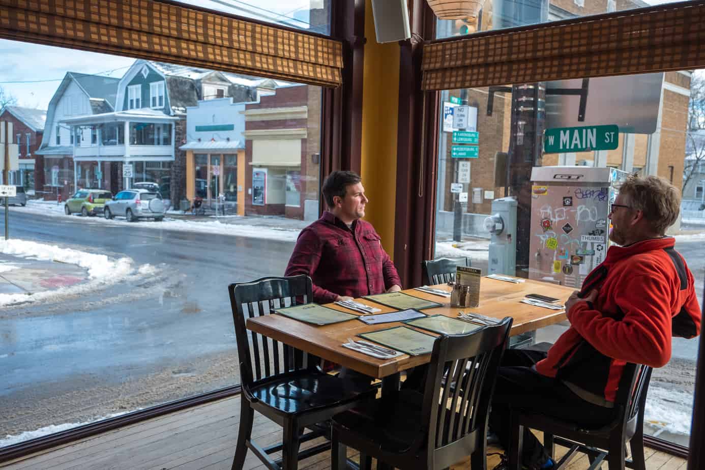 As the day wore on, our stomachs rumbled and we became aware that we had skipped lunch. Unsurprisingly, Michael knew of a place nearby. We piled into the two Toyotas, headed down the mountain, and drove to the Elk Creek Cafe and Aleworks. Nestled in the sleepy town of Millheim, Pennsylvania, this brewery serves up a mean meal with delicious brews. We grabbed a seat by the window and watched the world roll by, which strangely enough included horse-drawn carriages. I sometimes forget that this region is filled with Amish villages and that such things are a common sight.