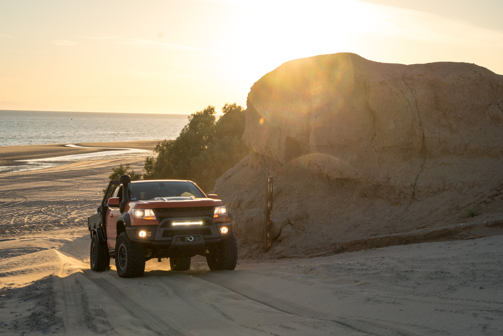 We had already spent a day in Mexico, completing a combination of crossing the border (and a prolonged inspection of the water and fuel in the tray bed by the Mexican border officials), driving MEX 2, and exploring the northern reaches of the Sierra Pinacate. The plan was to make camp each night, which made for the perfect excuse to use the Headspin. The lamp keys into each accessory and spins with a satisfying “shwoop,” rotating by magnet into the locked position.