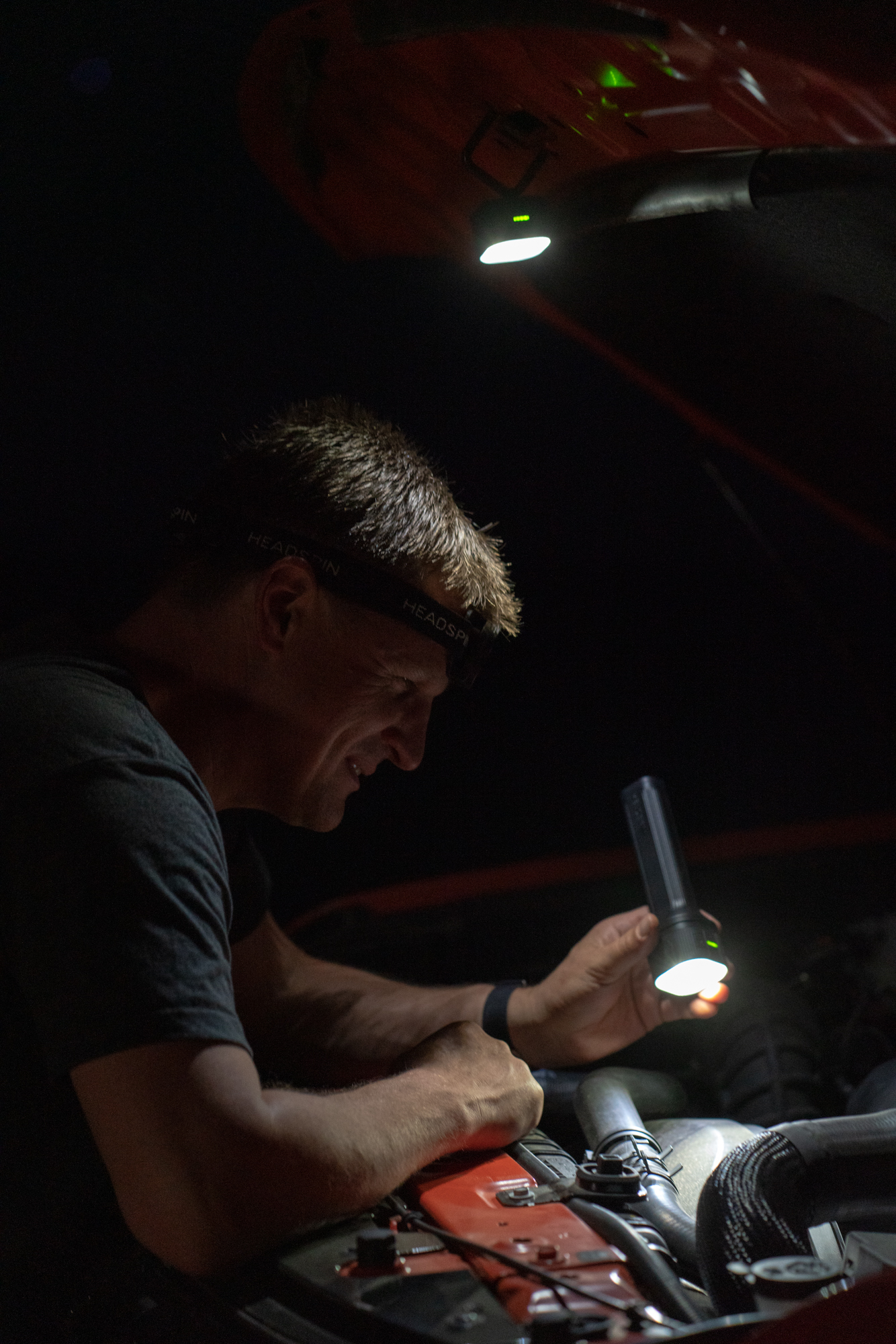 We mostly used the light in headlamp mode, which allowed for the hands-free pitching of my tent, preparing food for a meal, or doing general service and inspection of the vehicle. Personally, I found the mag-mount feature surprisingly useful and would click it to the side of a vehicle for additional camp light in flood mode.