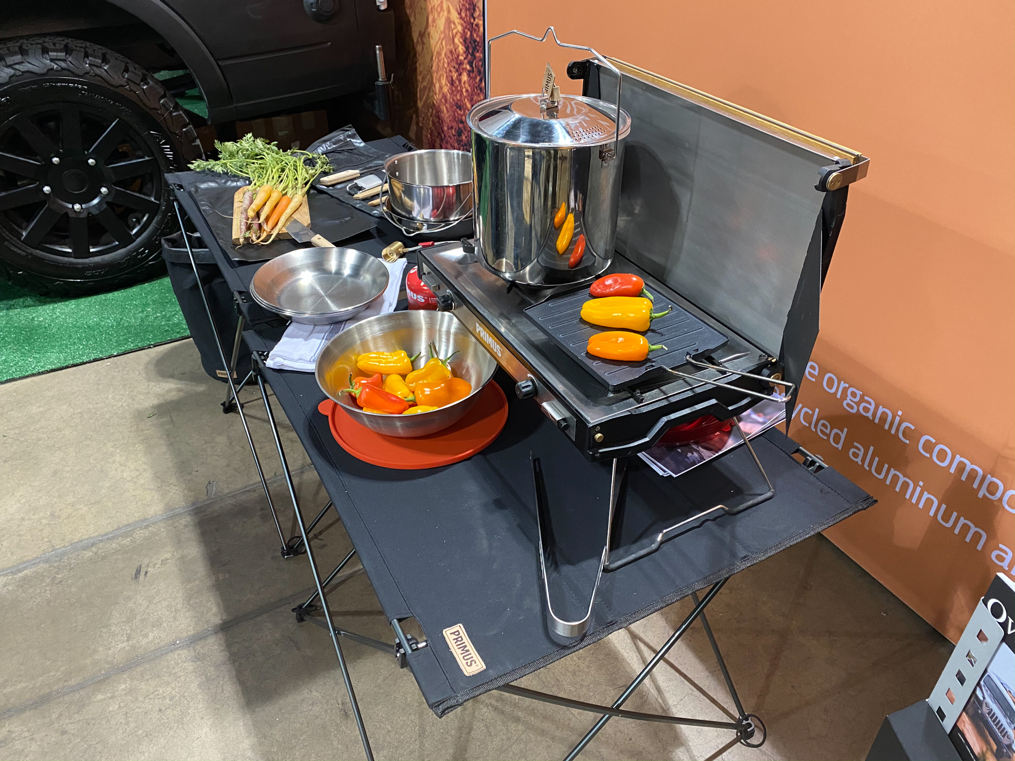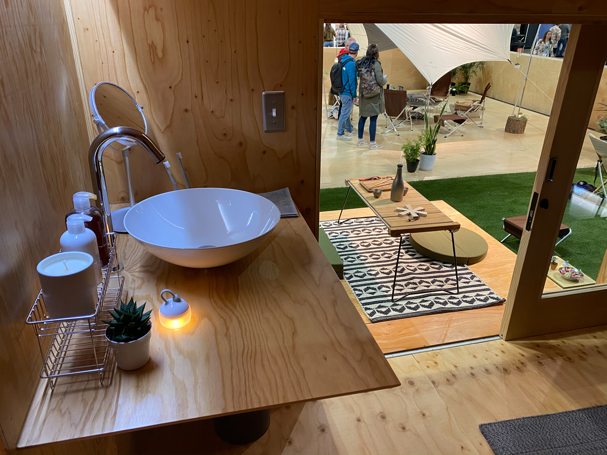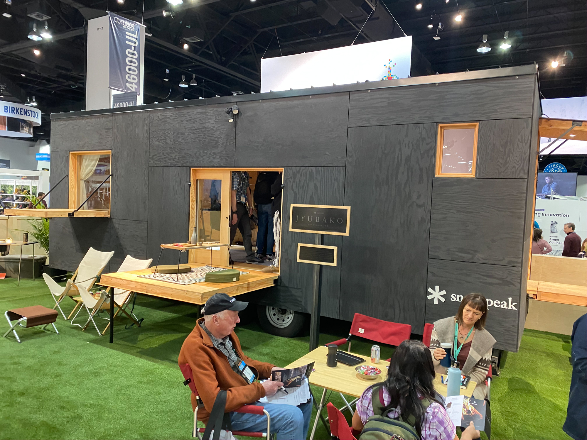 The most impressive camping unit was the new Snow Peak tiny home, which was on display in their booth and drawing significant crowds. The design is consistent with most Snow Peak products, favoring simplicity and minimalism. As a result, the trailer / home felt spacious and livable, the outside connecting with the inside via multiple windows and decks. It would be an easy way to significantly reduce expenses and same money for more travel! The tiny mobile home was designed by renowned Japanese designer and architect Kengo Kuma, and is called the Jyubako.