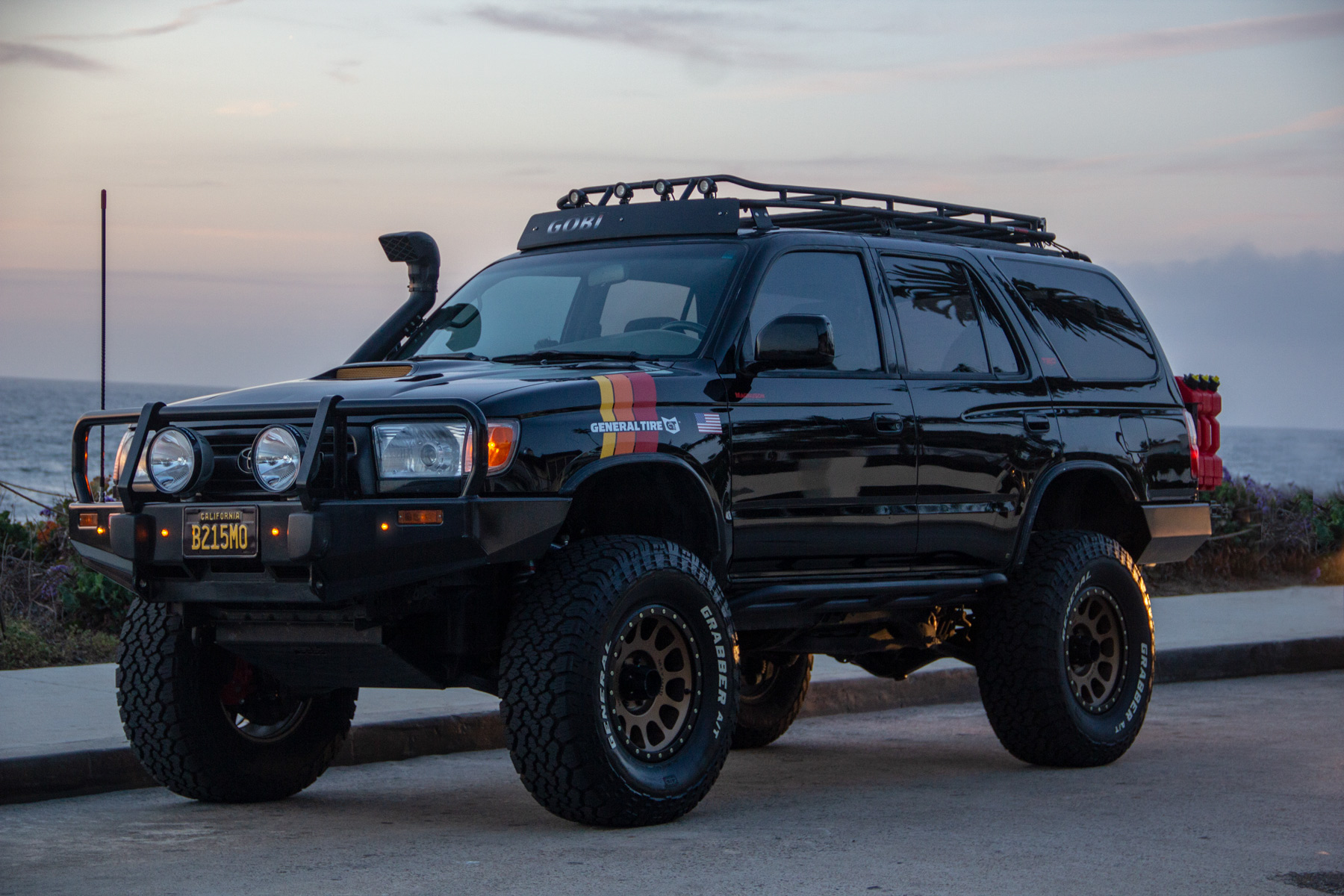 The 2000 4Runner is our feature build. For these 4Runners, a 2- to 3-inch lift and 33-inch tires are the ideal setup. Center of gravity, component stress, and fuel economy were sacrificed in favor of aesthetics, but the goal was mixing the best looks and stance with performance to create an iconic build. We’re very happy with it right now but have been contemplating a kind of 2.0 reimagining where we really take it to the next level.