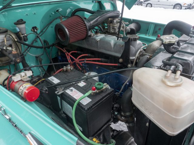 This 1970 Land Cruiser FJ40 is fitted with a 4.2-liter, inline-6 engine that produces 135 horsepower and 210 pound-feet of torque. The FJ40 incorporates a 3-speed manual transmission and a dashboard-controlled, 2-speed, centrally mounted transfer case. This model (like the second generation) was available in short-, medium-, and long-wheelbase variants and utilized a body-on-frame design with live axles on leaf springs.