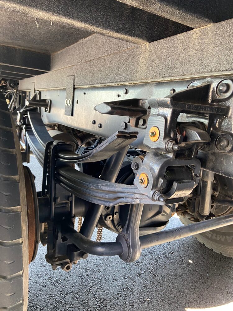 “Custom LED lighting on the rear and sides have been integrated into the flatbed. The side steps/platforms (with anti-slip bed liner) on both sides are custom fabricated and also the foot-steps to accommodate for the larger tires. The white trim pieces and bumper on the truck have been powder coated black to depart from the fire-truck-looking color combo. Custom 10 lug 22.5-inch wheels have been built to be able to fit the 445/65 Hankook Smart AM15 tire, which allows comfortable highway cruising while having fantastic grip off-road. Another benefit of this tire size is the availability anywhere in the US and around the globe.”