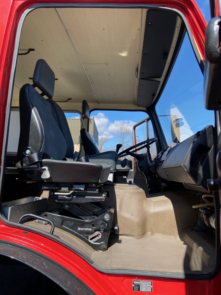 “The large 10 passenger Doka cab features an individual cab suspension and can be tilted in a few minutes with an onboard hydraulic pump. Heavy-duty recovery shackles are mounted front and back, and there are 12- and 24-volt trailer hookups/wiring available. The Mercedes is powered by a 10.9-liter V6 OM421 diesel engine, providing enough torque to tow an aircraft carrier. It’s mounted to a 5-speed manual, 4×4 transmission with high and low range and an automatic center and rear differential locks. Another nice traction feature to complement this setup are the automatic pneumatic snow chains. And just in case somebody needs to be alerted of the truck’s arrival, there is a four-trumpet air horn installed on the roof with a PA speaker mounted next to it.”