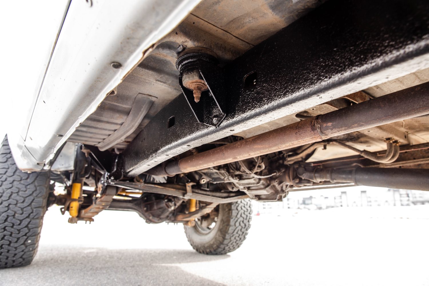 The driver’s seat has a small tear and the dash has a few cracks. There are 3 rust spots on the Cruiser itself worth noting. Two around the rear driver side wheel well, and one section just outside the door seal on the rear passenger wheel well. All are pictured. There is surface rust on sections of the A-pillars but would be easy to grind and touch up with paint. None of these spots have gotten worse during my ownership due to consistent washing and care. The frame has been coated in POR15 and is in great shape. The rear third of the frame had surface rust prior to the POR15, which can still be seen inside the C Channels on the rear of the frame. None of which is cause for concern. As shown in the pictures, the rear bumper has paint chipping and rust near the spindles.”