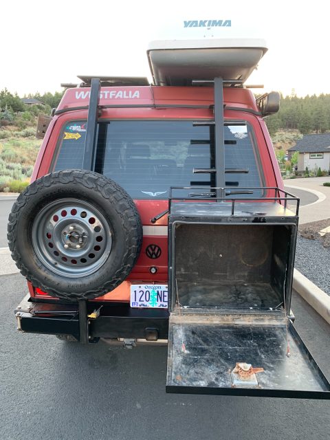 - GoWesty front and rear bumpers with dual swing outs and Aluminess storage box