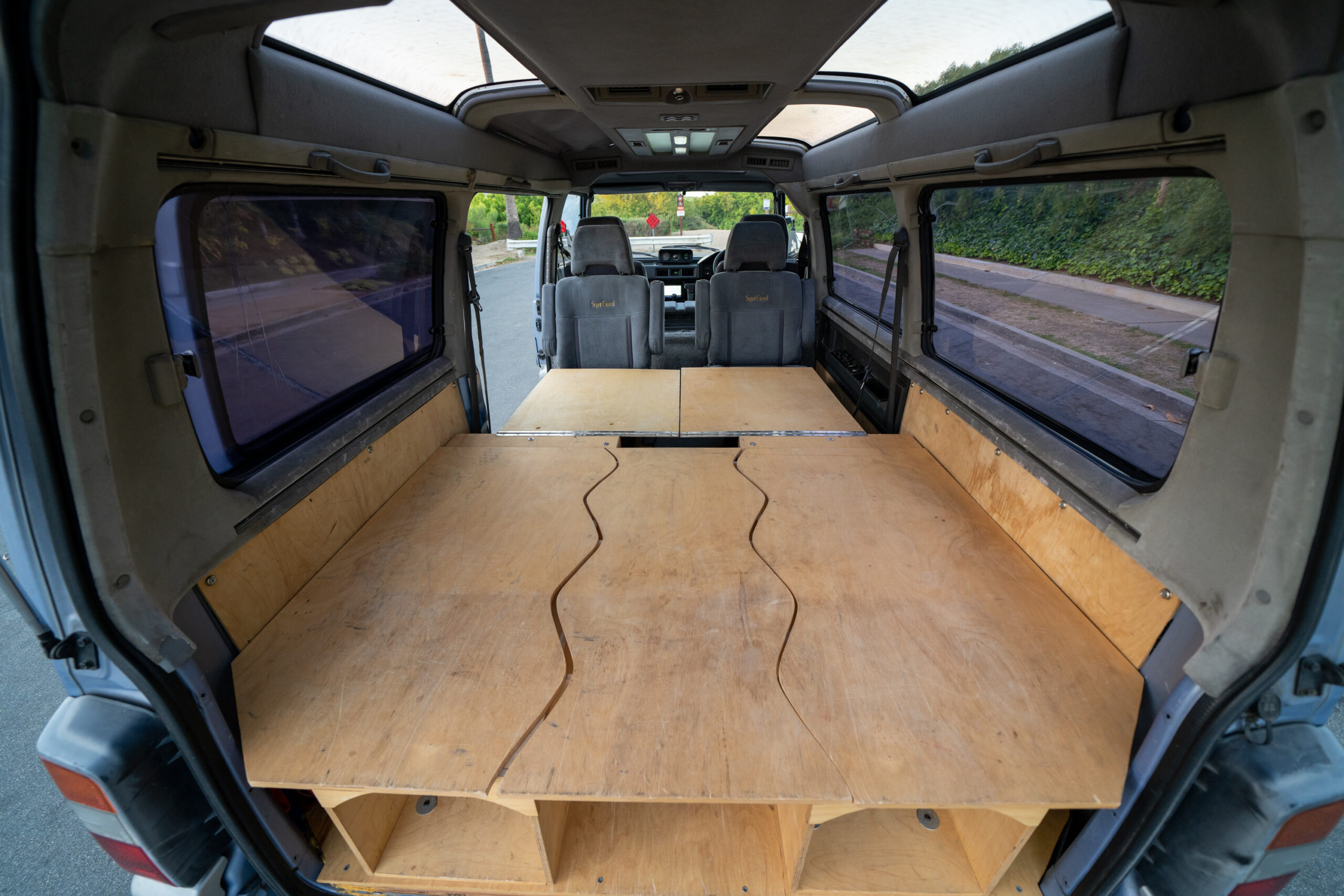 In addition to character, however, the van also boasts practical elements. The 2.5-liter 4-cylinder turbo-diesel engine is a rarity in North America, while the modular sleeping platform is ideal for overnight trips or organizing camping, rock climbing, skiing, and hiking paraphernalia. The platform breaks down into removable sections, creating room for a mountain bike or a pile of firewood.
