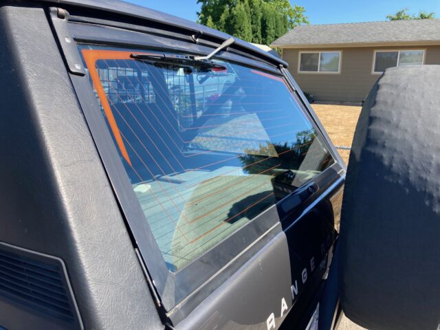 Rust mitigation was professionally completed in 2013. A new heated windshield and rear window with aluminium trim from Rovers North was installed in 2018.