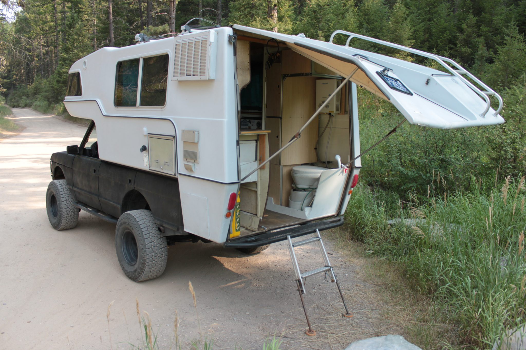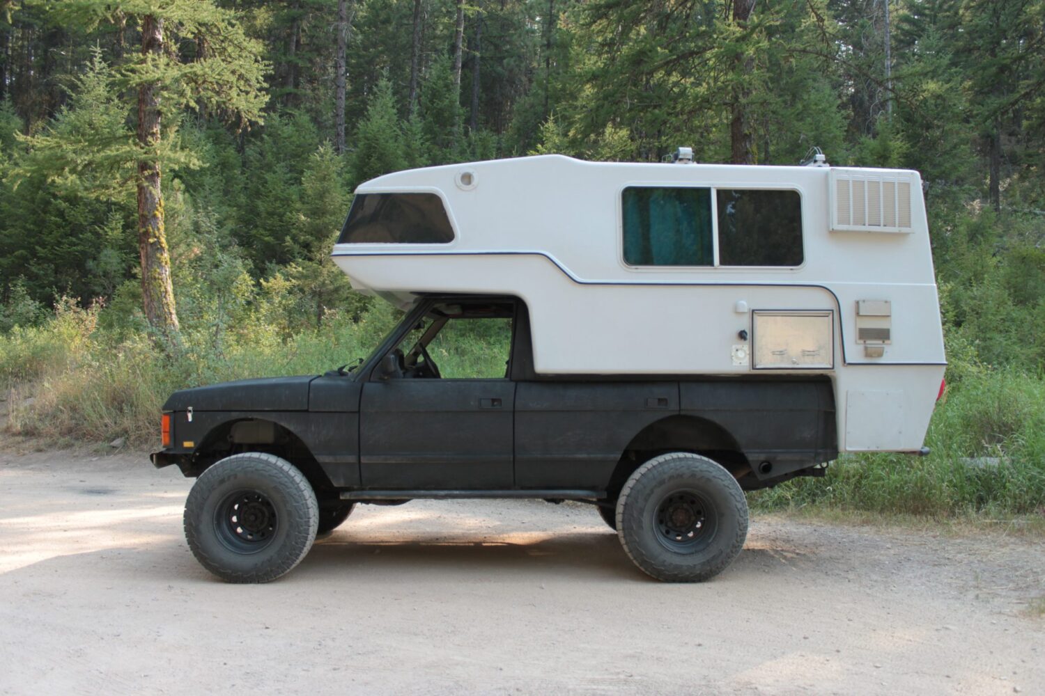 If this build were a human, I would immediately sit down at a dimly lit bar filled with cigarette smoke and cheap beer and listen to the travel tales of this 1995 Range Rover Classic with a fitted 1976 Sunrader slide-in camper. The Range Rover made the trek from Washington State to Panama before the seller acquired it in 2020, and the Sunrader camper lived through Saturday Night Fever, the first successful solo expedition to the North Pole, and the introduction of the first Sony walkman.
