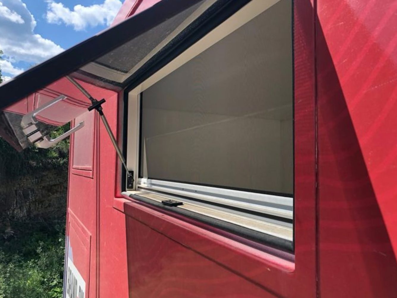 When combined with a 4-season habitat, the MTV is a go-anywhere haul-anything basecamp. Fun and easy to drive, it fits in my driveway next to my Tundra. The composite box is completely bare inside but it does include window shades and screens with blackout covers and a queen-size bed platform that have all been installed. This 16-foot Total Composites Habitat box is ready for interior buildout. The cab is also ready for carpet, headliner, and finishing. The truck runs and drives flawlessly and is painted red under the vinyl wrap.