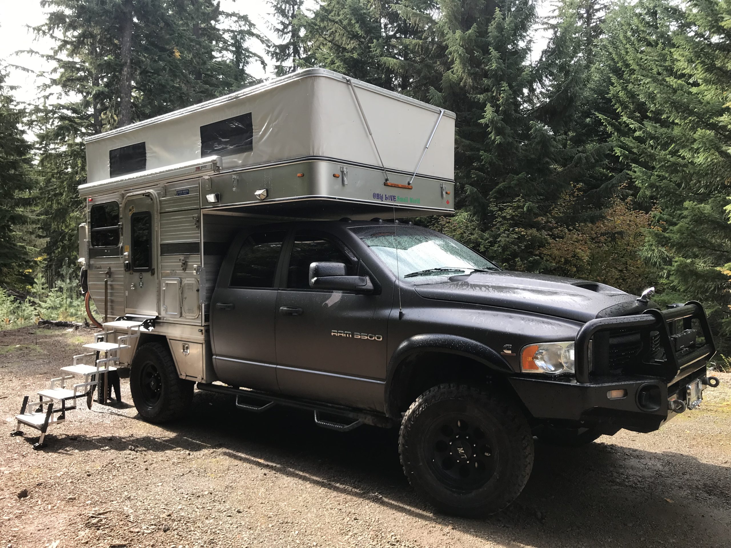 We’ve recently shared several overland-ready Ram trucks , including this 2020 Ram 2500 w/ OEV Camper, a 3500 Norweld Touring Setup, and a 2013 2500 Cummins Manual w/ Norweld Flatbed and Woolrich Hawk. Long-lived and powerful motors, impressive 4WD capability, luxurious interiors, generous max payload and towing capacity, and access to extensive aftermarket parts and services are just some of the reasons these trucks are so popular. Today’s Quad Cab 4WD 3500 might be my favorite, incorporating an extensive list of modifications, a Four Wheel Campers Hawk Flatbed, and an inspiring history of off-grid adventures. We’ve all seen listings titled the “ultimate turn-key overland rig,” but very few can support these claims with documented real-world testing. Alternatively, this is a proven setup that has already driven from Alaska to Ecuador, crossed the Andes twice, and explored National Parks in the spacious wildernesses of Washington, Idaho, Montana, Wyoming, Utah, and New Mexico.