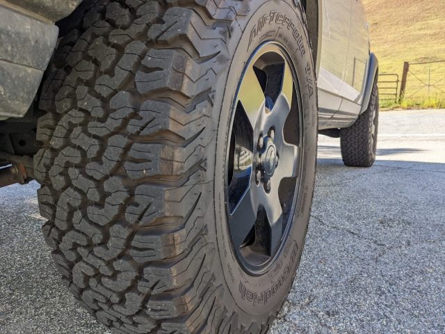 - Land Rover gloss black wheels with BFGoodrich KO2 tires