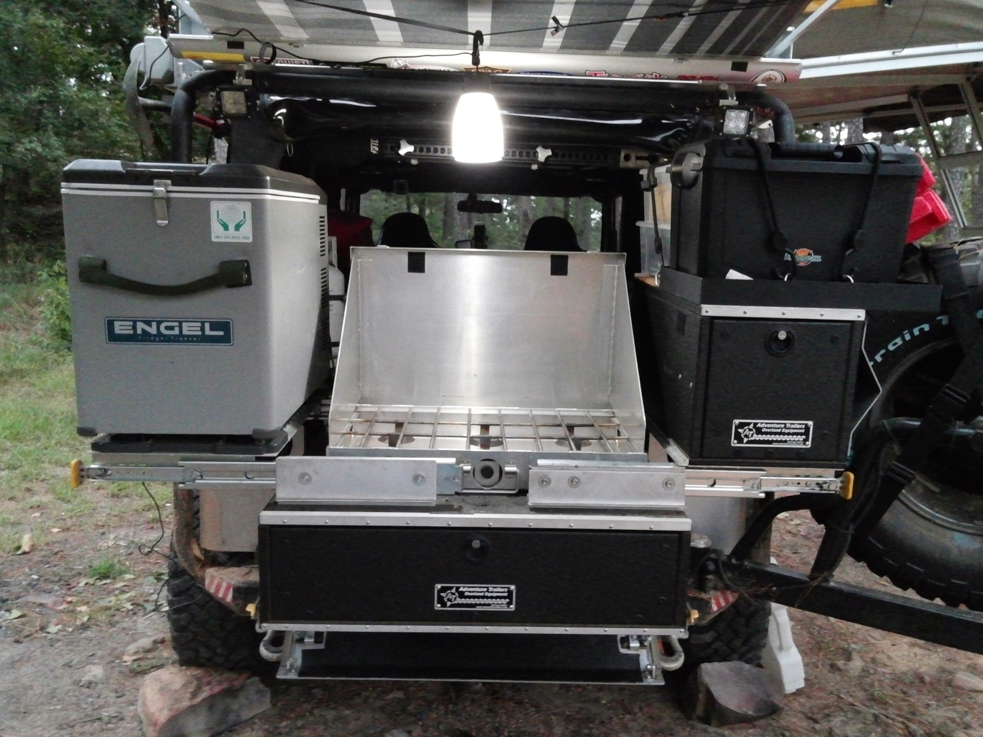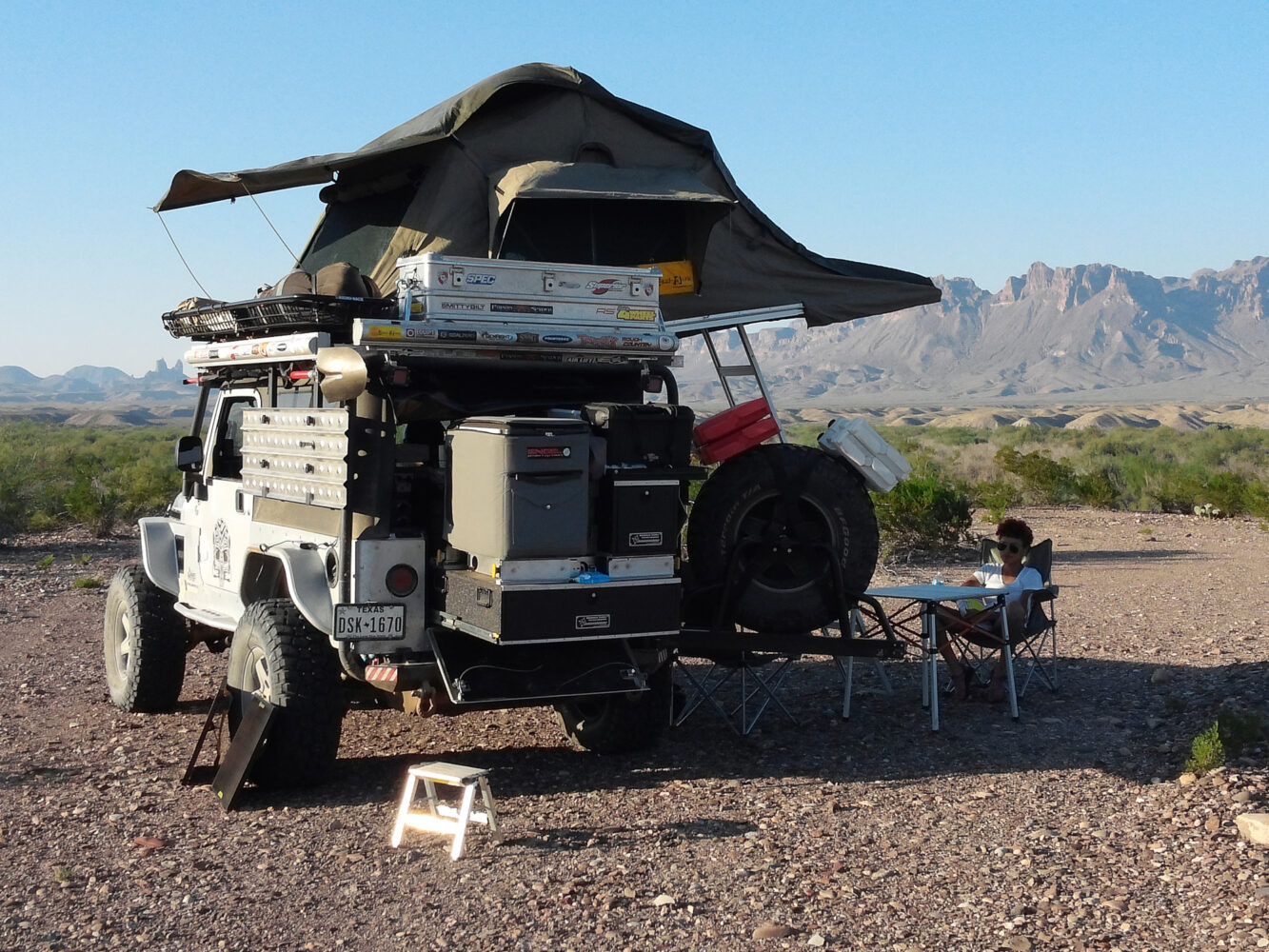 What I like about the Jeep is the huge kitchen that expands out of the back on sliders and the Eezi-Awn 2000 self-retracting awnings; they are so easy to use I don’t know why I don’t see them more.
