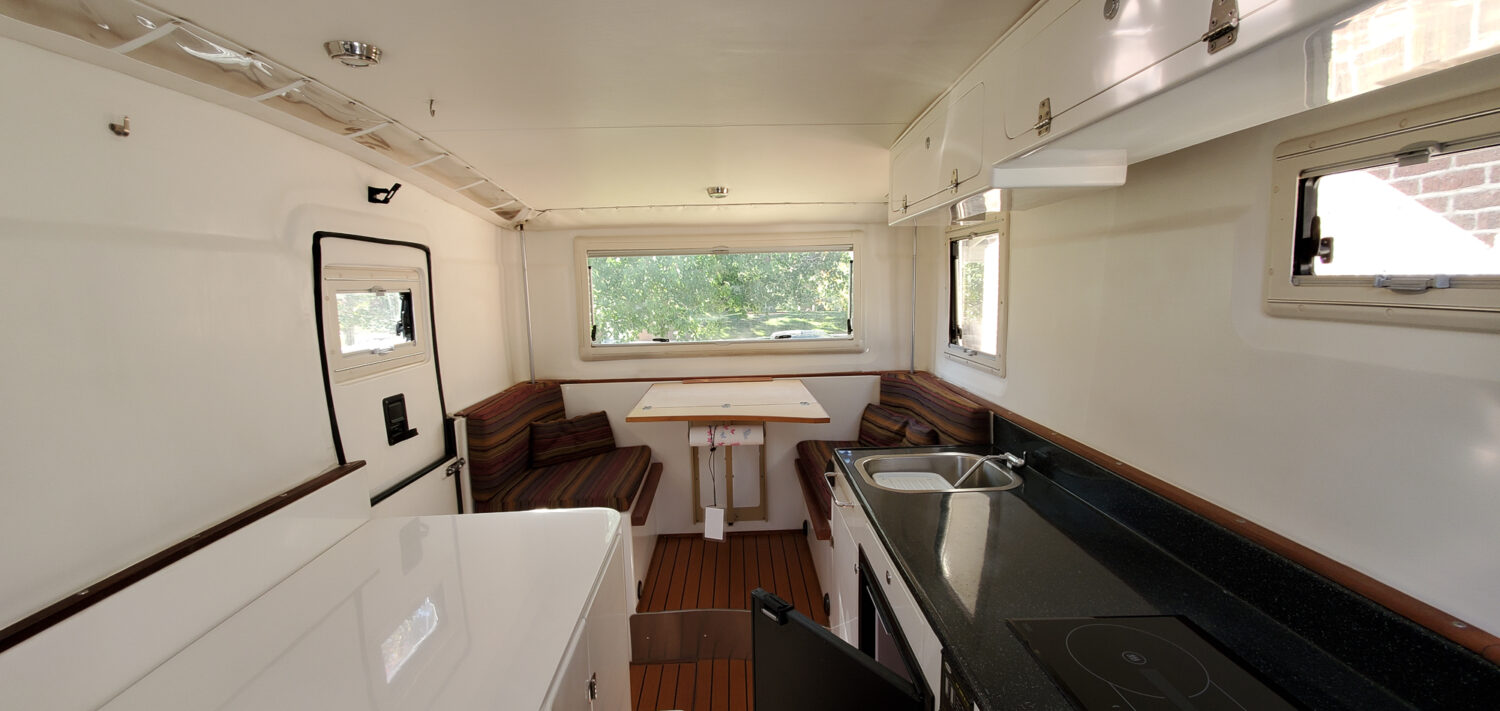 Interior storage: under the floor and bed, upper cabinet, lower cabinet, under the seat, storage between bath and bed