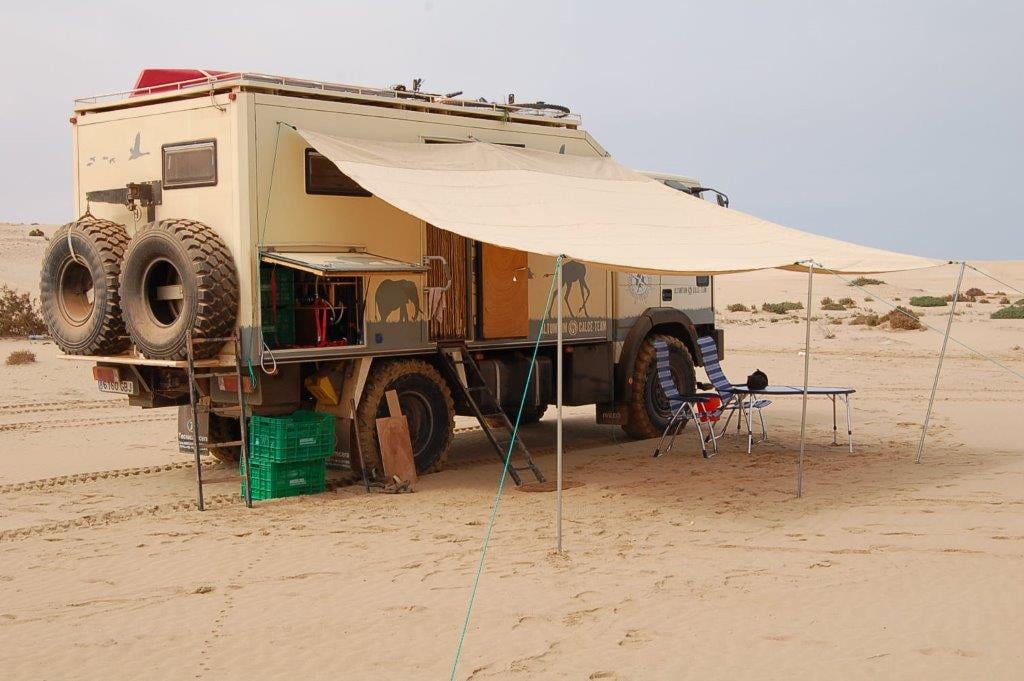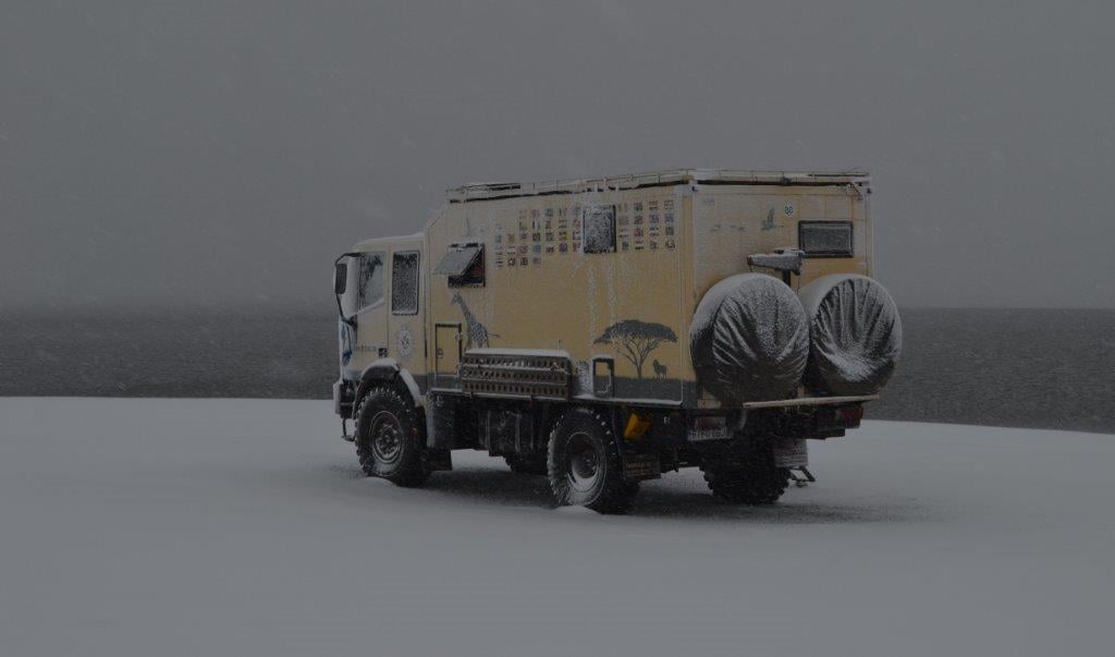 “Our friends call us the transworldists because we have been touring the planet for 20 years. First aboard our catamaran with which we circumnavigated the earth in seven years. After that experience, it was not possible to stay at home. We sold the boat and made this truck with which we have traveled Africa, Asia, Europe, and America. With [it] we have enjoyed the most exciting adventure through remote and secluded places such as the Kalahari, Sahara, and Gobi deserts, as well as the Pamir route, the Mongolian steppe, the Siberian tundra, the great glaciers of Alaska, and the Rocky Mountains.