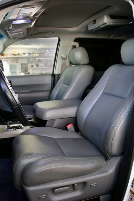 “The Sequoia has been impeccably maintained since original ownership and has been garage-kept most of its life. Recent maintenance over the last two years included replacing the starter, water pump, serpentine belt, spark plugs, brakes, all fluids, and more. The front two seats and center console were professionally reupholstered, and the entire floor carpet [replaced]. More recently, a new battery and 35/12.5R18 BFGoodrich KO2s on the 18- x 9-inch Level 8 MK6 wheels [were added] with a four-wheel alignment, new ceramic tint, and a second ceramic coat to further protect the paint. This custom-built Sequoia by Steelman Built is one of a kind and in near immaculate condition, both inside and out, with no dents nor rust. The truck runs and drives incredibly smooth and strong. It does not burn or leak a drop of fluid. Clean Hawai’i title and Carfax provided.”