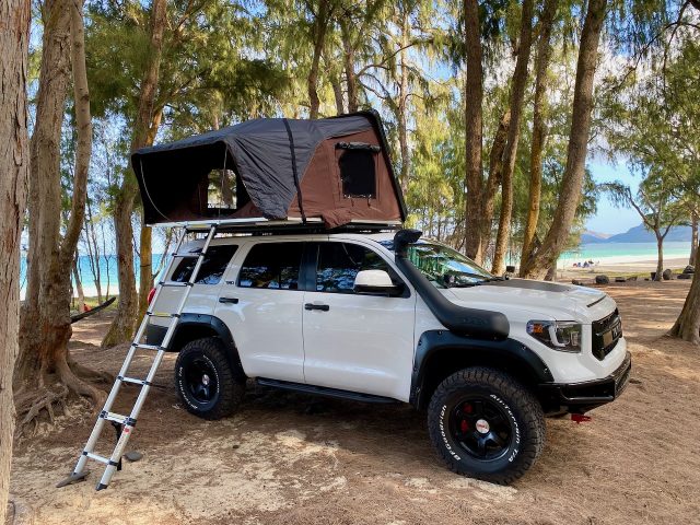 This 2008 Toyota Sequoia Limited with 2018 Tundra front clip conversion is listed for $38,000 and is currently located in Honolulu, Hawai’i. The seller is also open to selling the vehicle without the rooftop tent for $35,000. Check the full vehicle specifications via the original Expedition Portal forum post here.