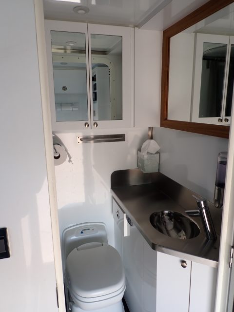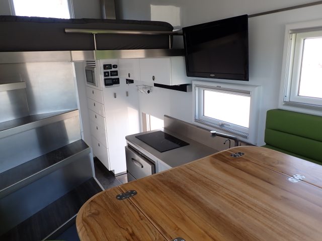 “This expedition truck was built by Global Expedition Vehicles in 2014 on a 2004 Unimog U500. The body is a Pangea model that is 16-feet 5-inches long with a lifting roof, which incorporates a loft bedroom and king-size bed. It is configured with a U-shaped dining area in the rear that can also be converted to a bed.”