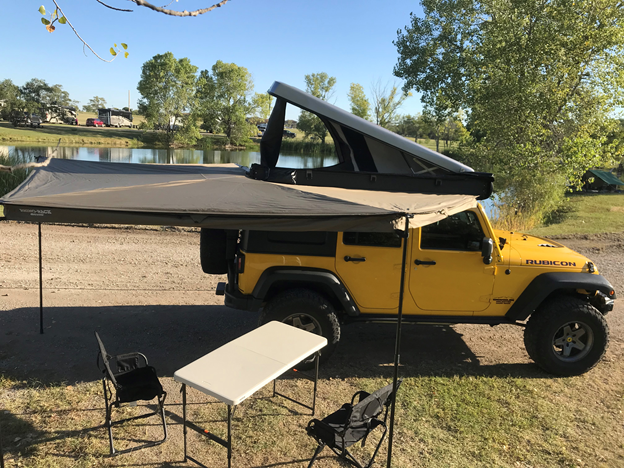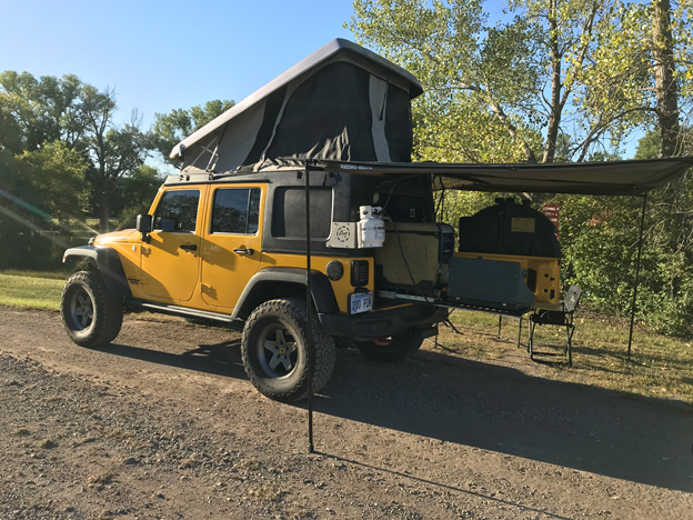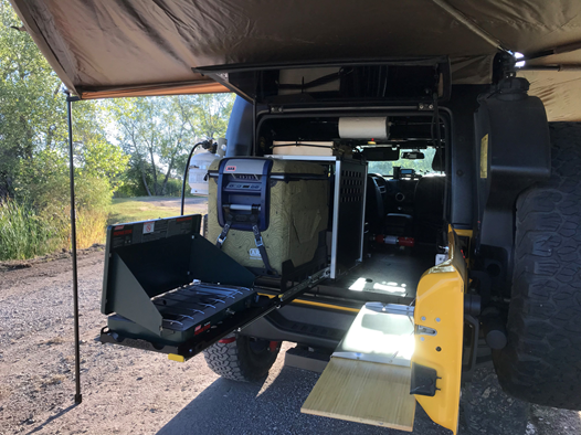The Jeep, named “Rube Goldberg” by the previous owner, has been completely reliable. Never an issue. Other elements that I really love about this build [include] the Goal Zero Yeti 1400. It is charged by the vehicle’s electrical system when on the road and provides hours of AC/DC and USB power when at camp. The Ursa Minor pop-up camper, coupled with the Rhino-Rack Batwing awning, tie everything together for a great way to relax after a fun day of sightseeing.