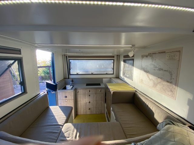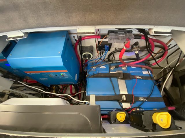 - Four Victron 200-amp-hour lithium batteries, 1,300 watts of solar, and Victron MultiPlus inverter