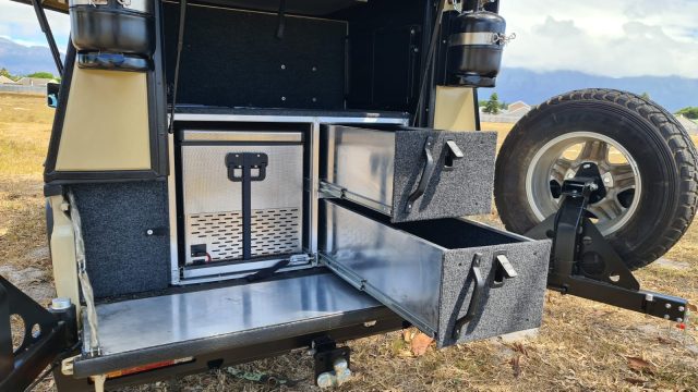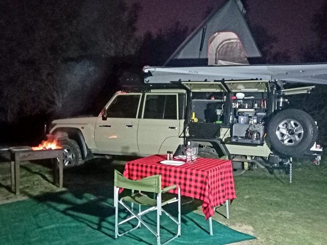 With the African sun beating down on the 120w solar panel and paired with the Victron inverter and charger and 2 lithium batteries, you can be off-grid for at least a week, depending on your food, fuel and water supplies.