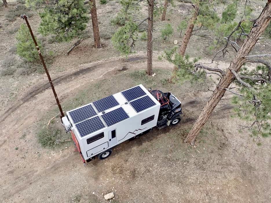 - Ample storage throughout – underbody, garage, cab roof, and living area interior