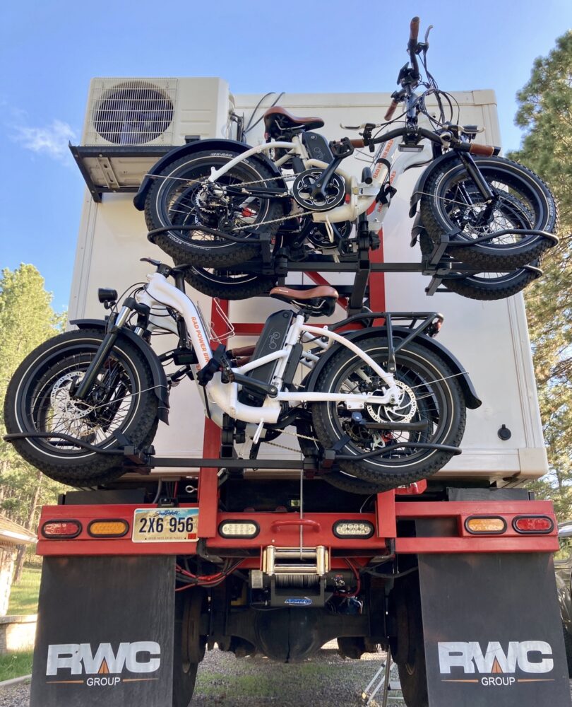 “When we set out for full-time travel, the four of us brought everything we could want for all four seasons: four e-bikes, two paddleboards, a two-person kayak, wet suits, winter gear, backpacks, tents, lawn chairs. If you want to bring everything, this rig has you covered.