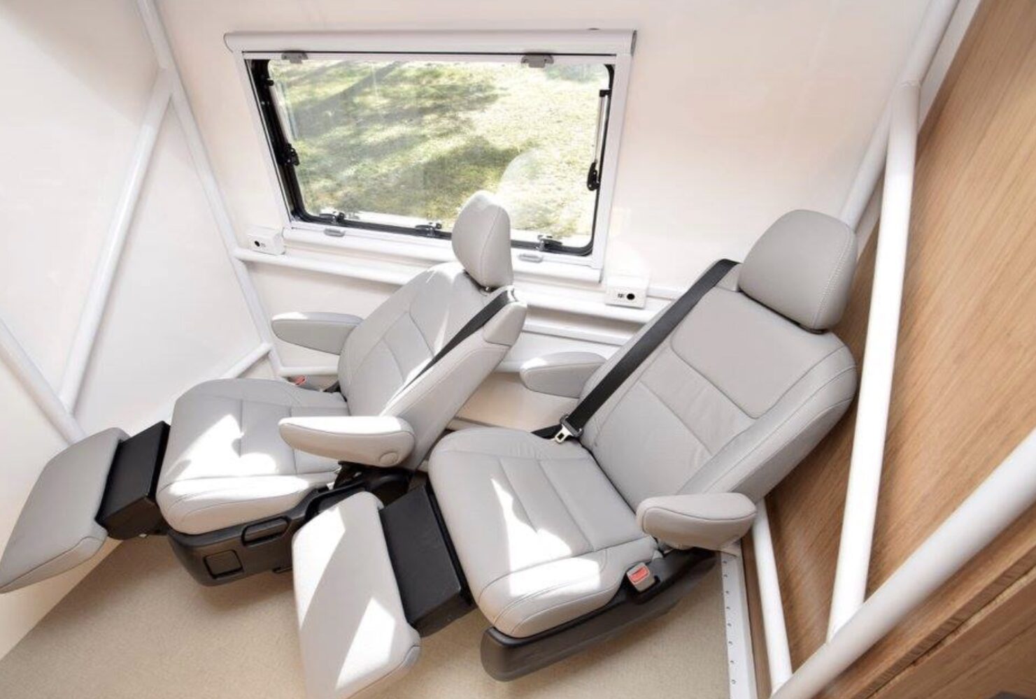- Two non-DOT belted adjustable swivel recliner seats with convenience lighting