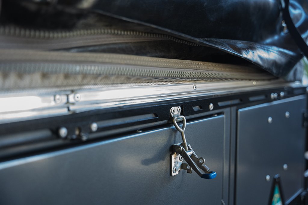 Our black tent cover is without a zipper. It’s technically broken, but at this point, we would run it without a zipper even if we had everything replaced. There are a few Patriots out there that have also gone zipper-free, and the downsides are pretty minimal—a little dust will get under the cover in very dusty environments, but that’s about it. We’ve had it out on the interstate in a downpour with no water ingress whatsoever.