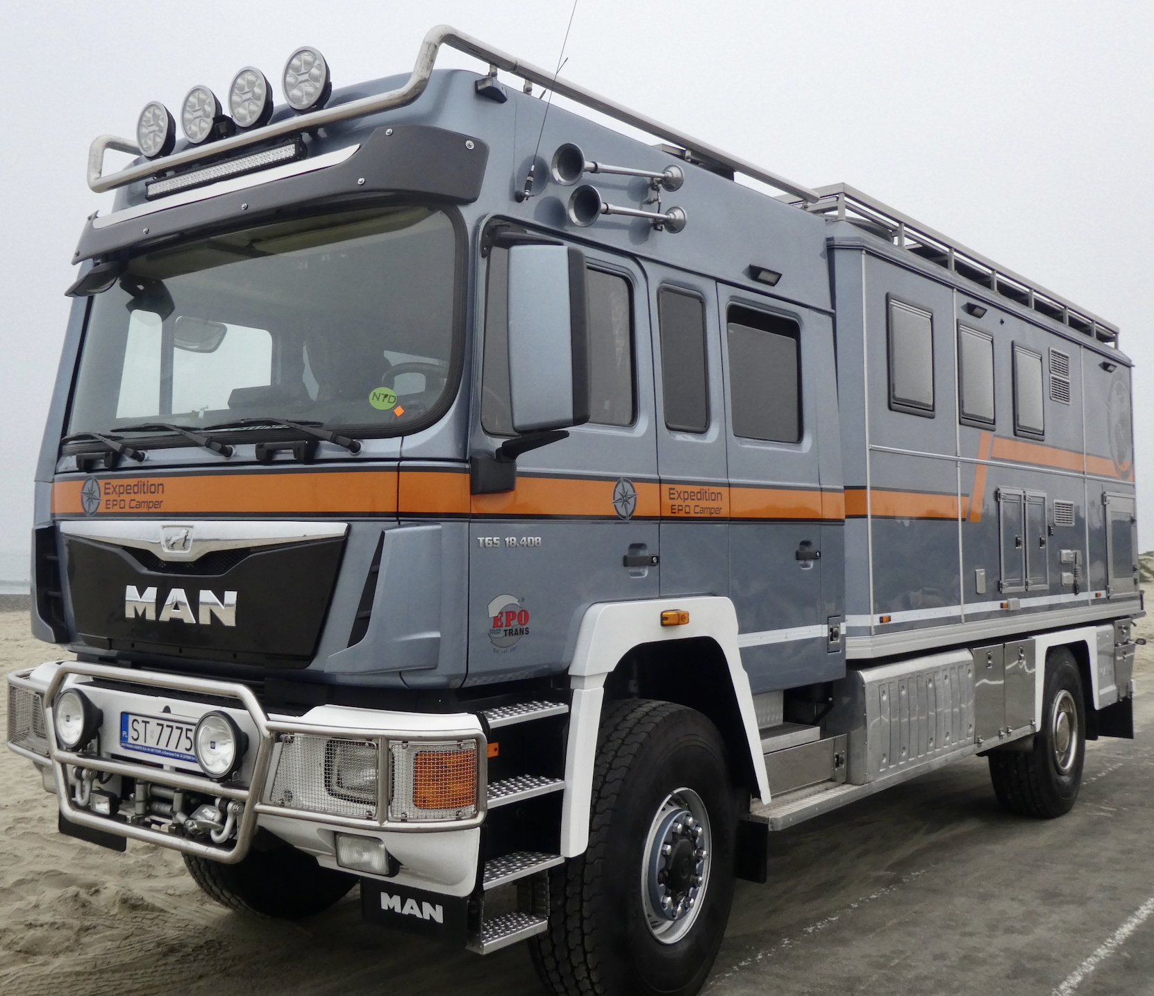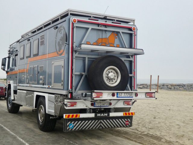 “I love this camper as it has everything required for my family and me to live comfortably in every part of the world due to its 110-240 electrical capacity, 3,000 miles of fuel range, and massive storage space inside and out. It is a go-anywhere camper, with all the comforts of home, built on a very robust Man 4×4 TGS with lockers.”
