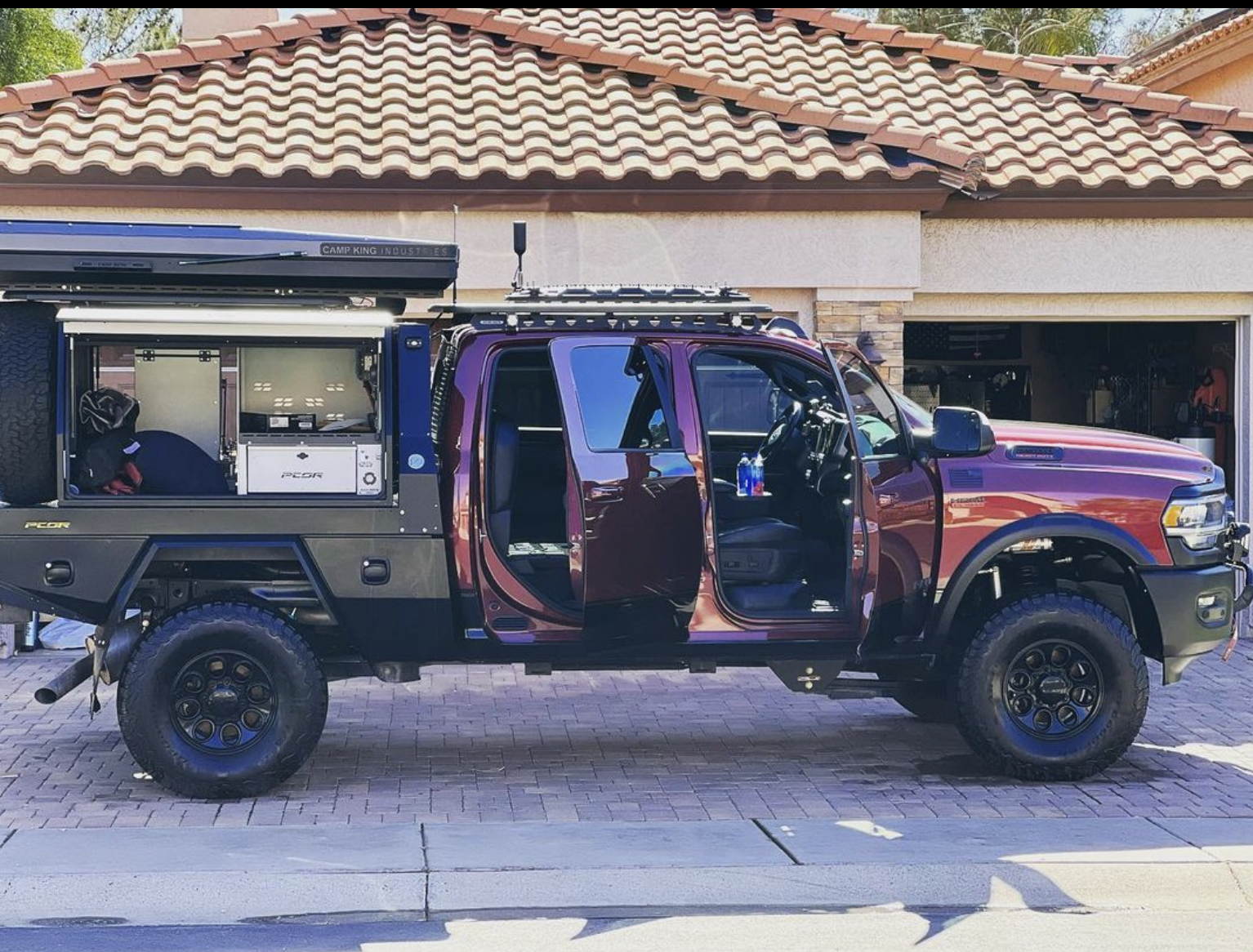 This is one the best overland builds on a Ram 2500 platform you will find. The truck is the ultimate off-roader/overlander and is built to meet the perfect balance between capability, storage, ease of use, and comfort. It has been extremely well taken care of and professionally cleaned and waxed every other month. Oil changed every 5,000 miles. Up to date with routine maintenance and recalls. The whole setup is surprisingly light for its size, thanks to the aircraft-grade aluminum used by PCOR 4×4. Professionally built by Exploration Outfitters and then improved by local off-road shops. You are not only paying for the rig, but the hundreds of hours that went into adjusting, testing, and fixing the smallest details. You are guaranteed a vehicle that is trail ready.”