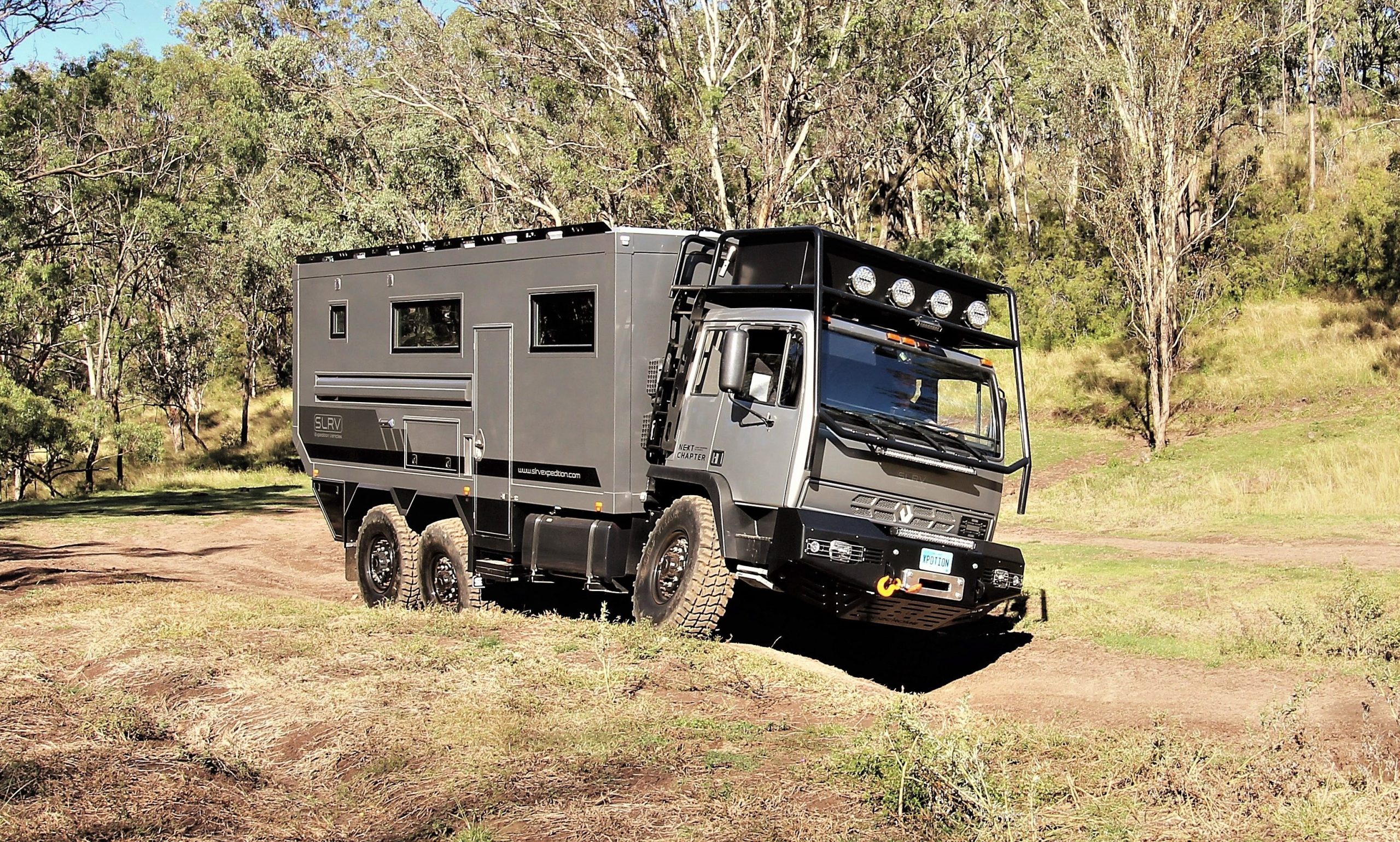 “The chassis is a 1999 Acela 6×6 that was completely overhauled and delivered in December 2019. The chassis was then shipped to Australia to have SLRV build a 6.8-meter box. Everything was completed, and the finished expedition vehicle arrived in the US in June 2021. You can read about the entire build on the forum.”