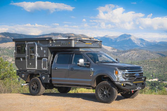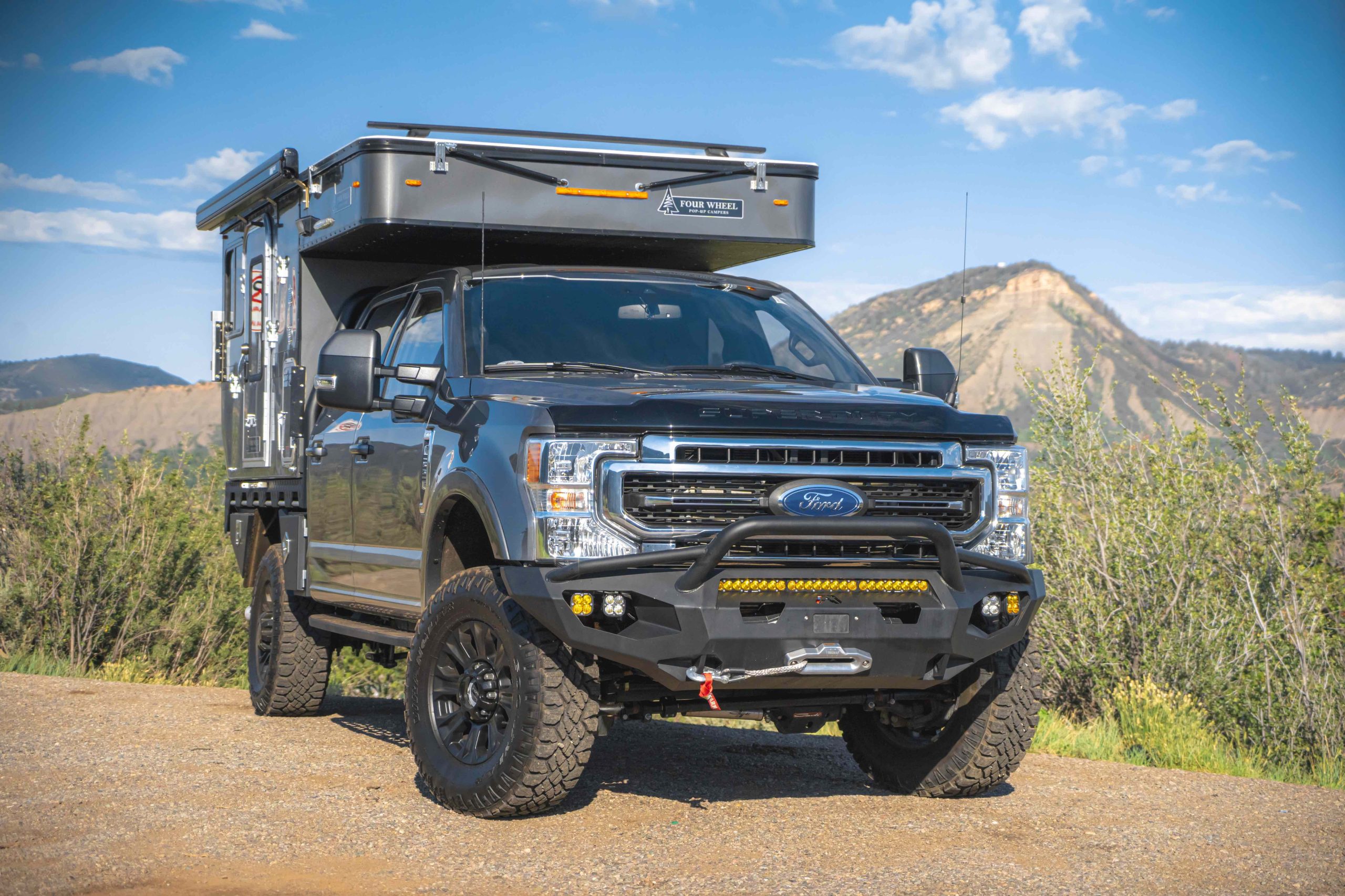 “Personally, I think this is the ultimate Four Wheel Campers’ rig. I’ve been really happy with Ford’s 7.3-liter Godzilla engine and the way the truck handles with the camper. Coming from smaller trucks with slide-in campers, I know what feeling heavy and overweight is like. This truck isn’t that. From the factory, the Super Duty has been amazing. The Tremor package comes stock with 35s, skid plates, leather seats, dual batteries, and my favorite part, no carpet. The entire floor is just like rubber. We uprated this already impressive Tremor with Carli suspension, Fab Four’s beefy Matrix bumper complete with light bars, cubes, and a winch. All of the aftermarket work, including camper installation, was done by the good folks at MainLine Overland.”